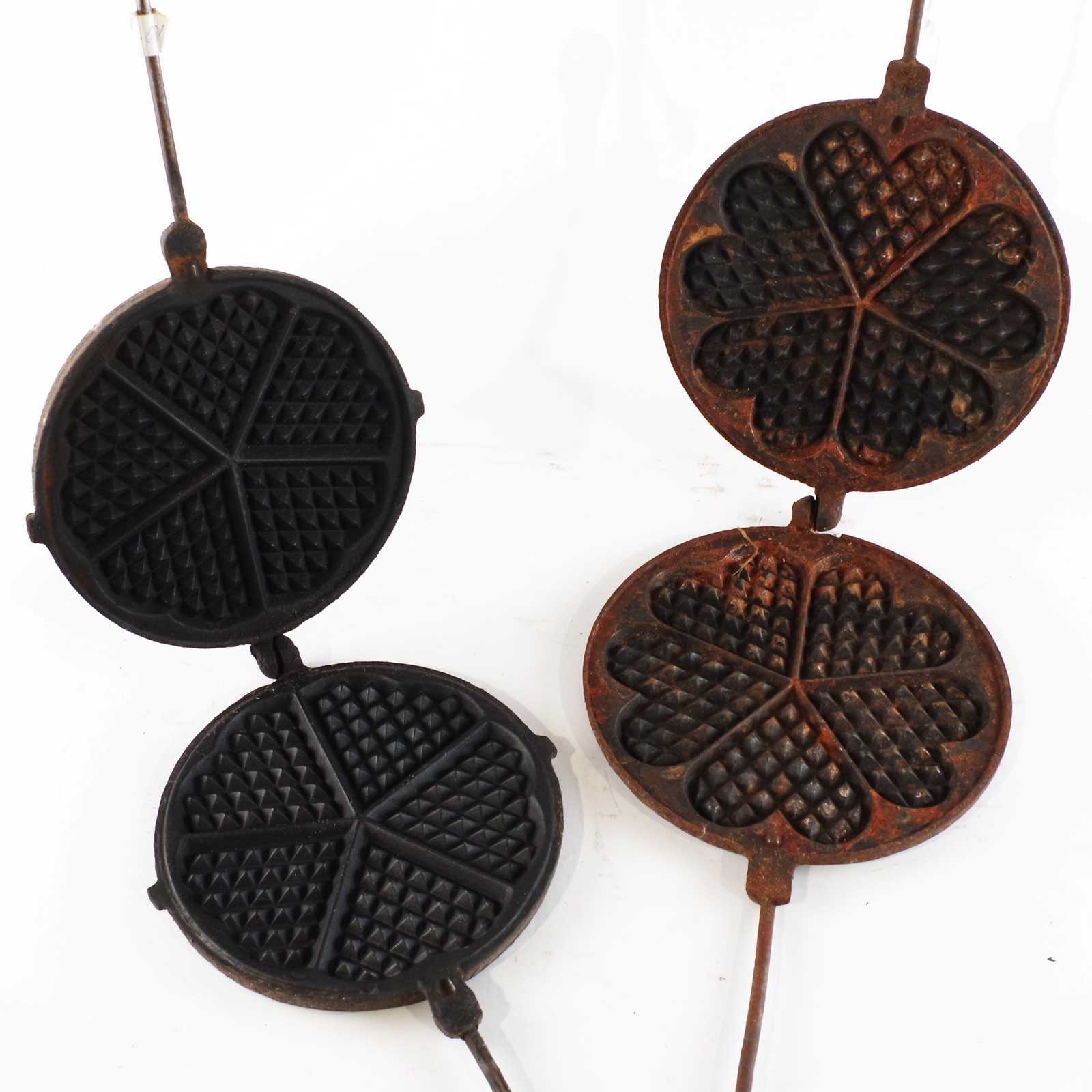 Bilder VÅFFELJÄRN, 2st, gjutjärn. L: 42cm längsta. Rost finns.
