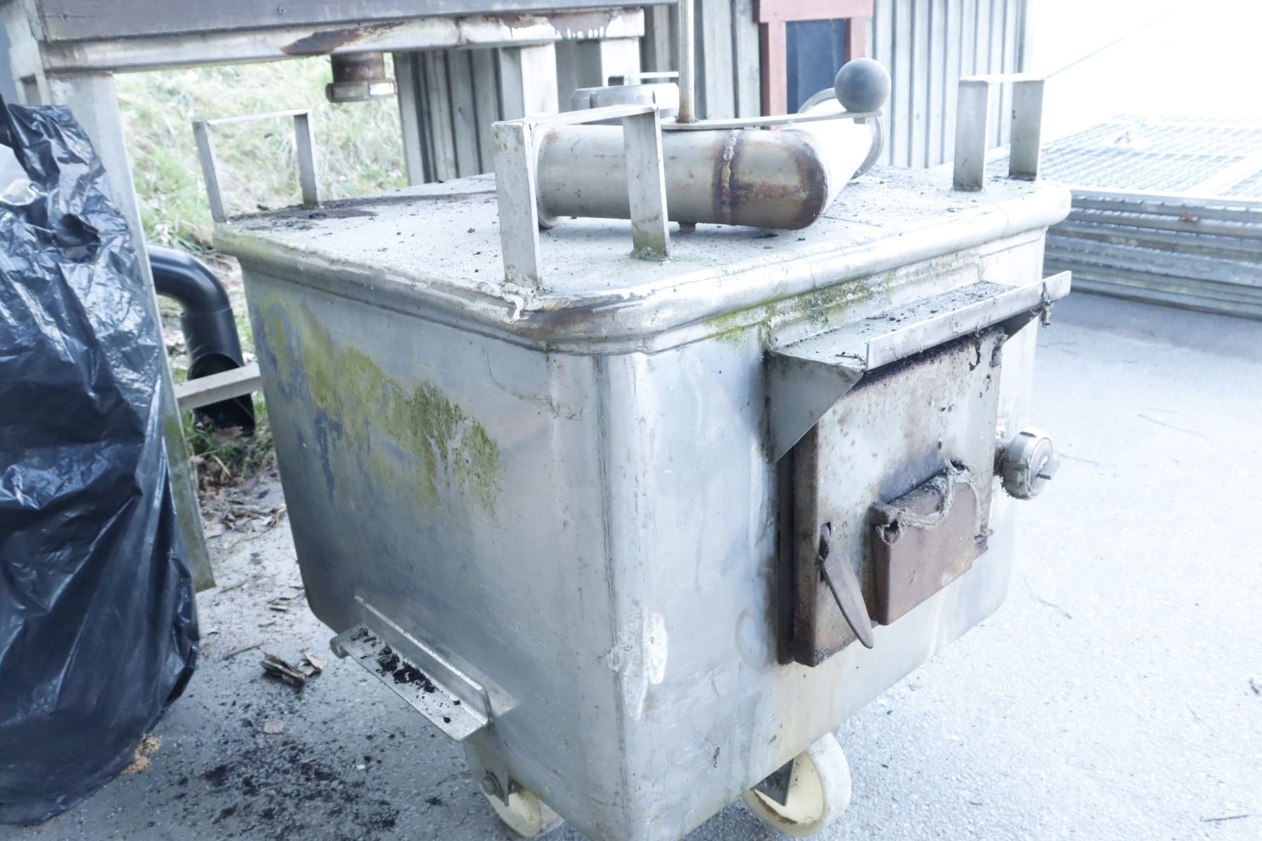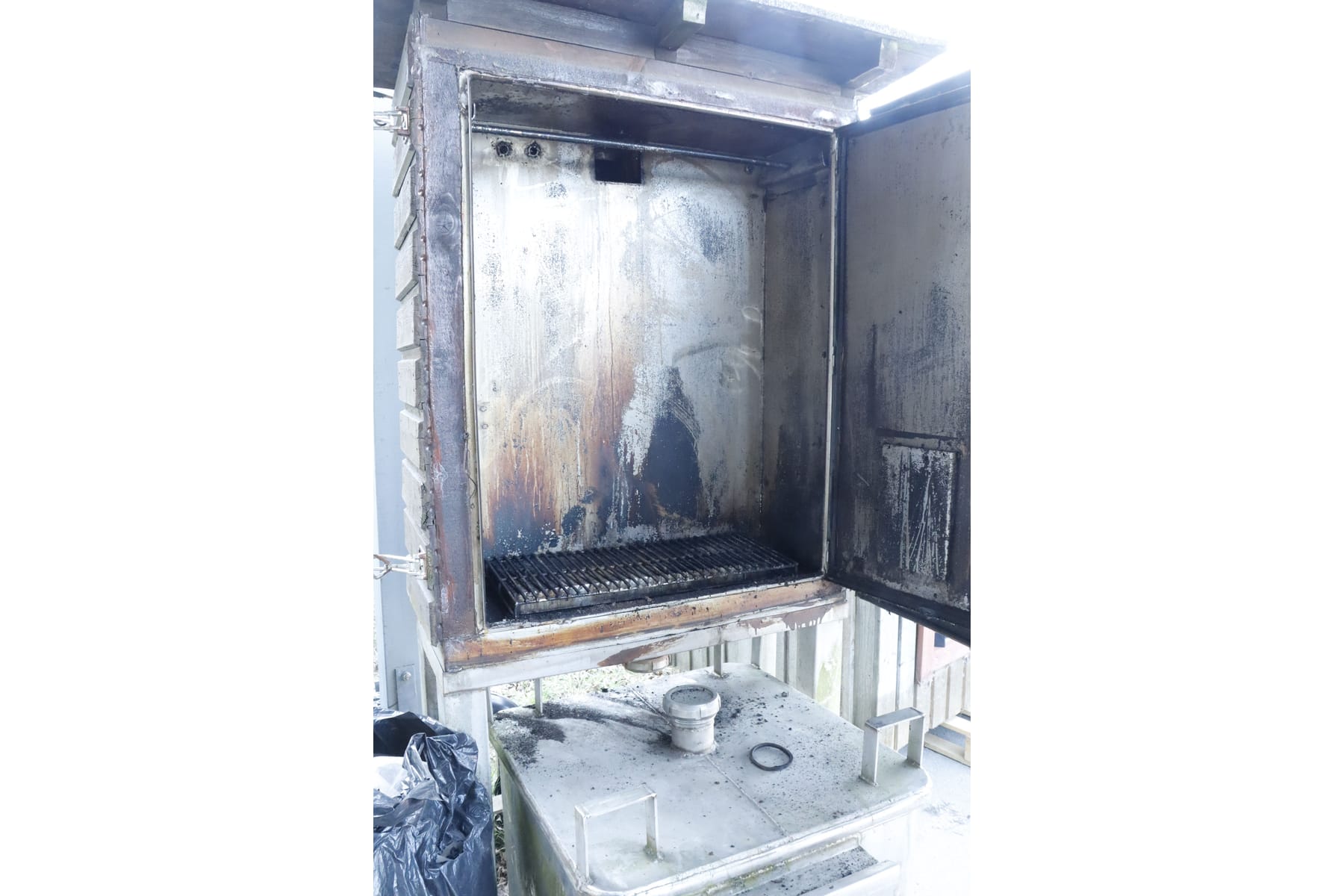 Rök, rostfrittskåp med eldningsugn i rostfritt.