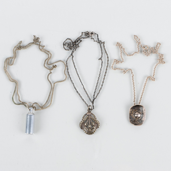 HÄNGEN MED KEDJOR, 3 st, bla silver, 1900-tal