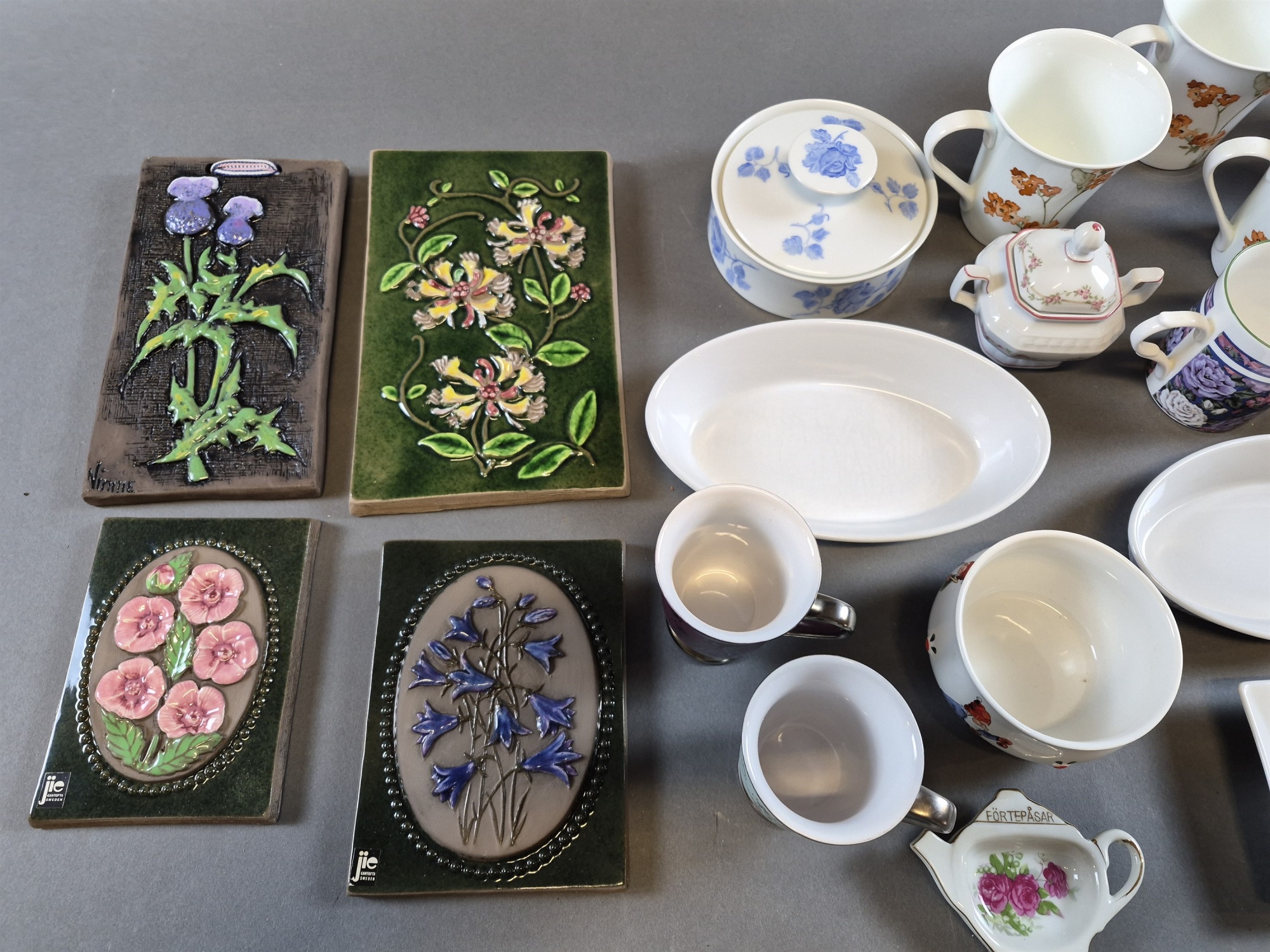 Parti porslin/keramik bl.a formar, väggdekorationer, högsta 10.5 cm
