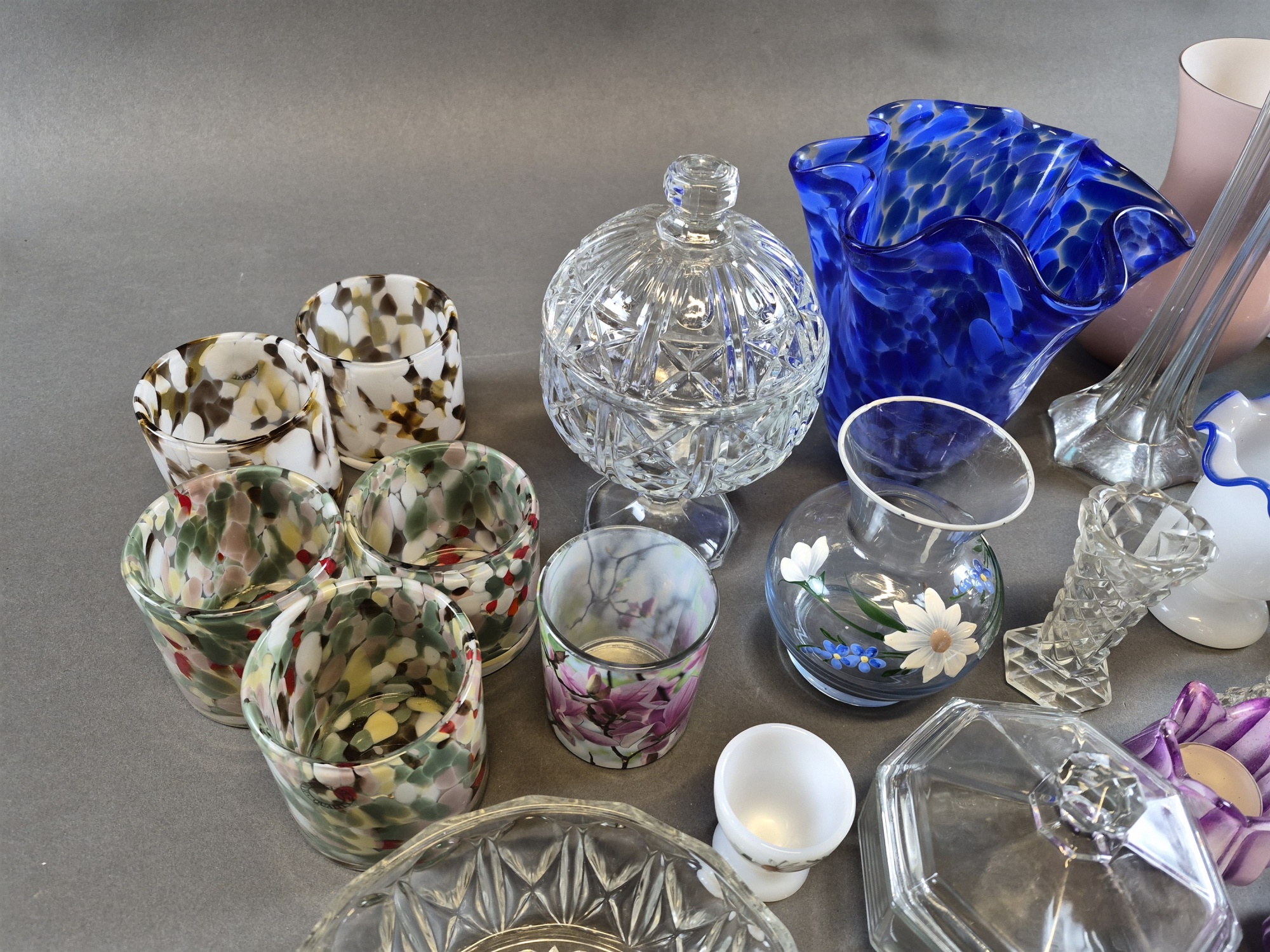 Parti glas bl.a vaser & ljushÄllare, högsta 25 cm
