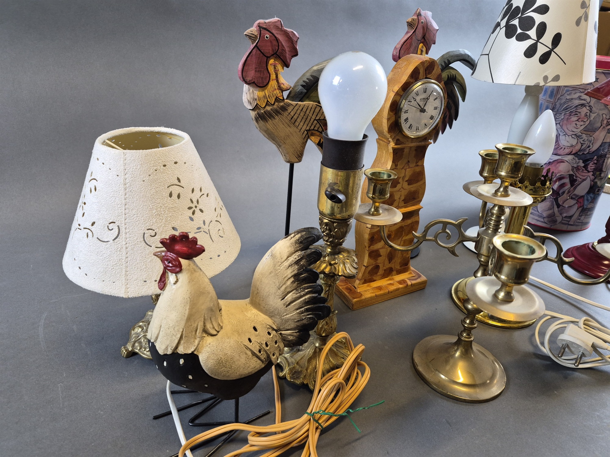 Parti bl.a bordslampor, kandelaber högsta 48 cm