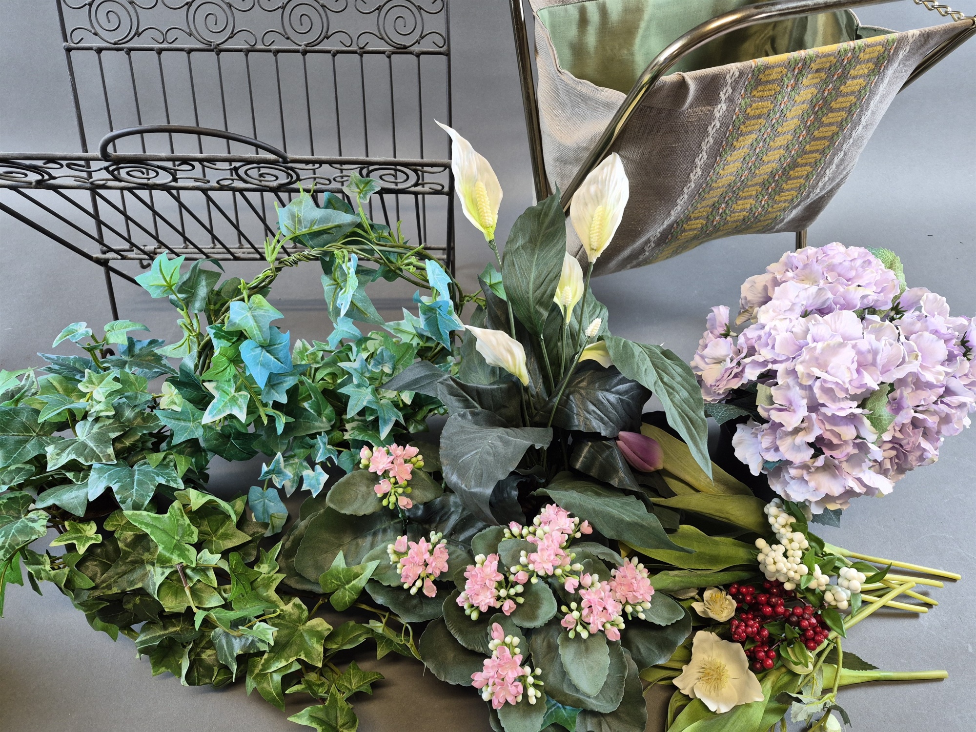 Parti tidningskorgar & konstväxter högsta 47 cm