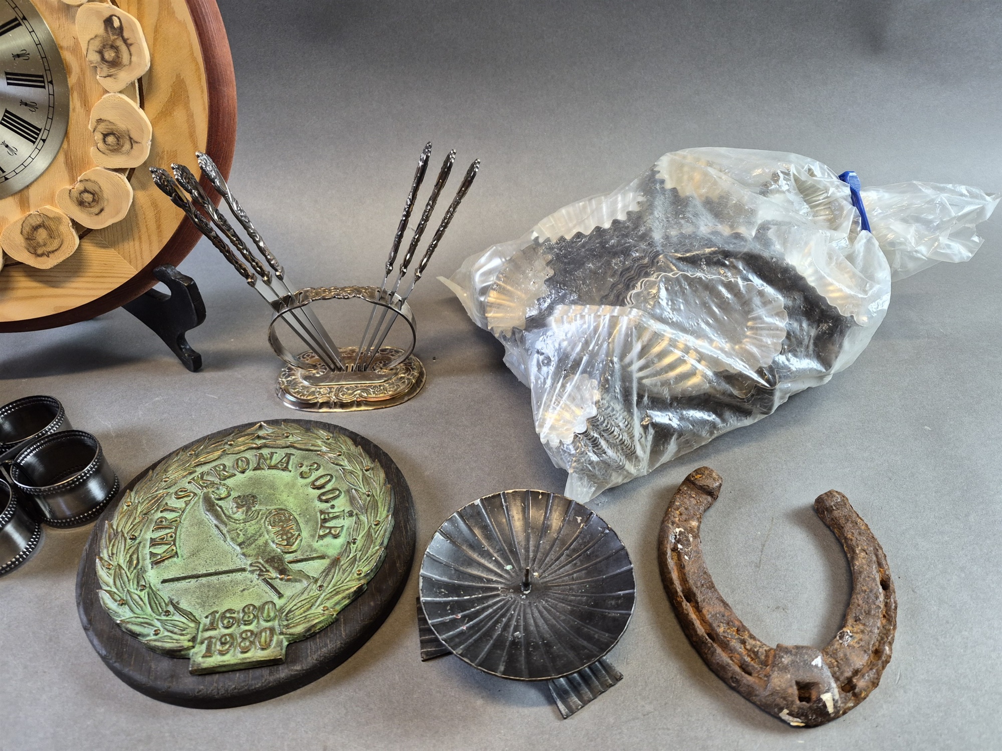 Bilder Parti metall bla kakformar, servettringar och koppar, högsta höjd på bild 35 cm