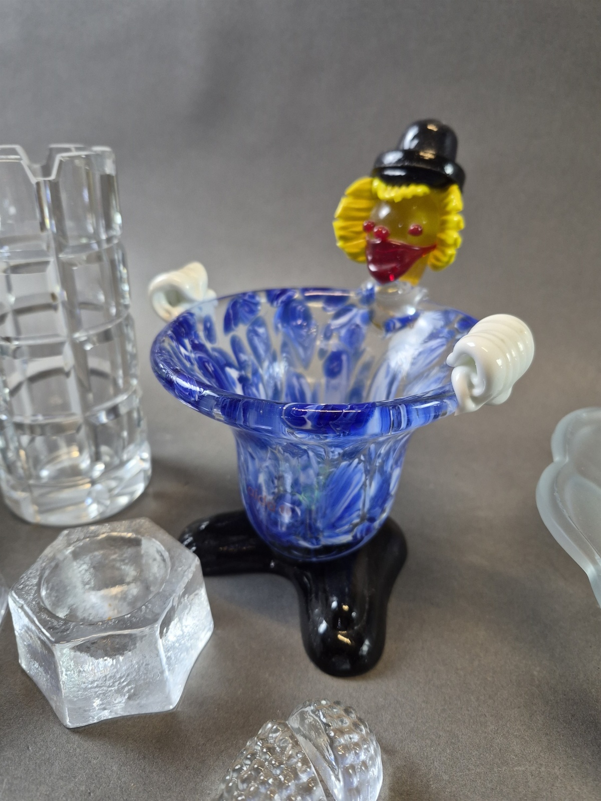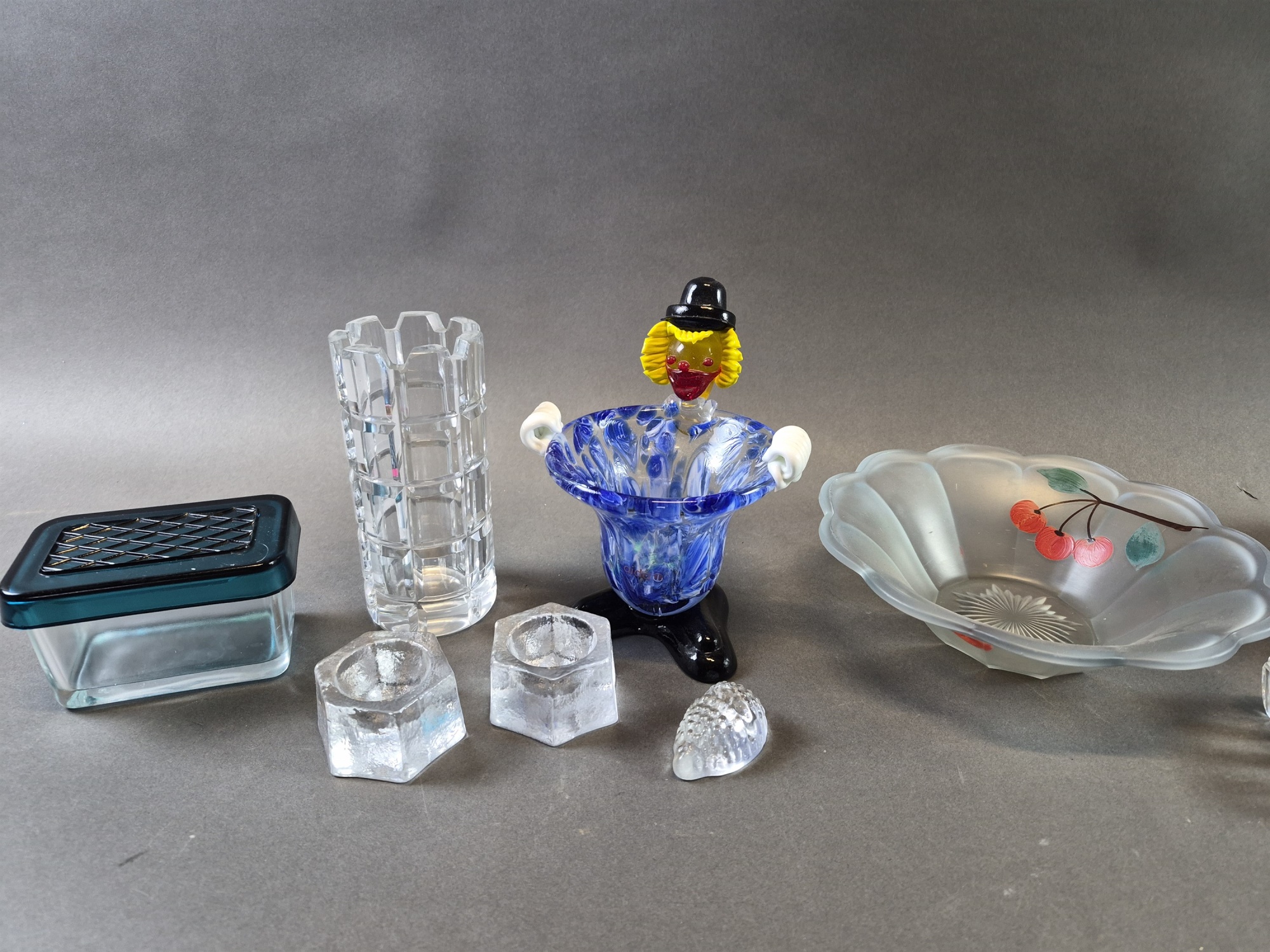 Parti glas bla clownskål Aida och fönsterlampa, högsta höjd 17 cm