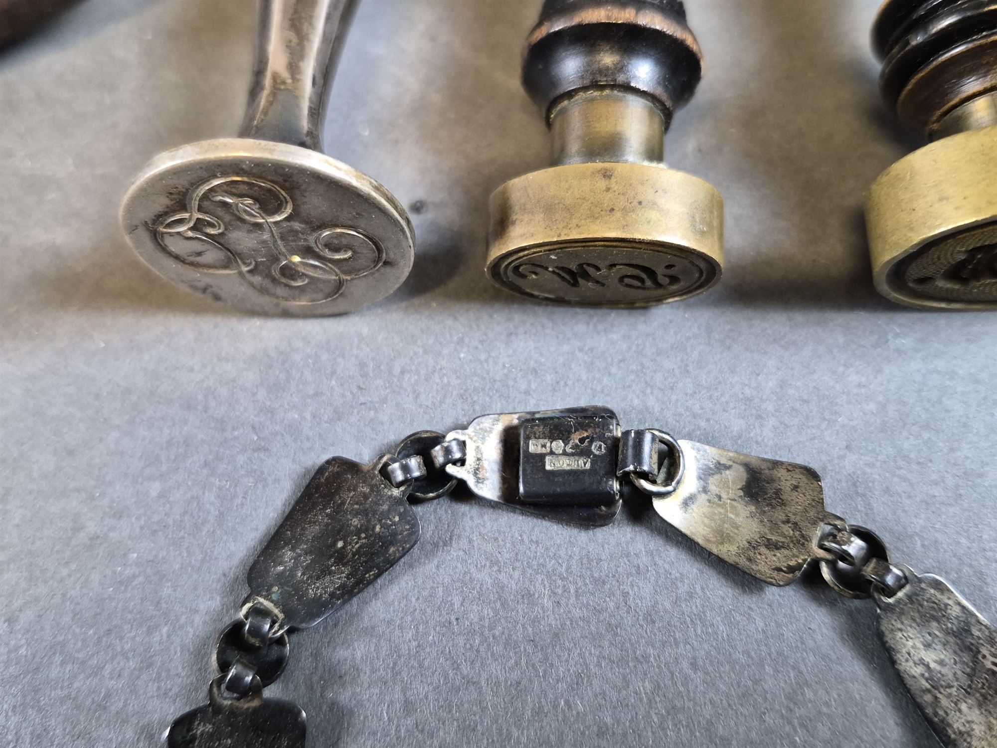 Bilder Sigillstamps 4 st en silver, silverarmband & smyckesstäd järn, totalvikt silver 32 gram, högsta 9 cm