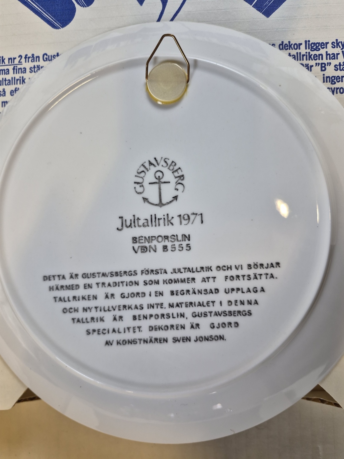 Bilder Jultallrikar Sven Jonson Gustavsberg 6 st & minnestallrik Kiviksmarknad största diameter 22 cm