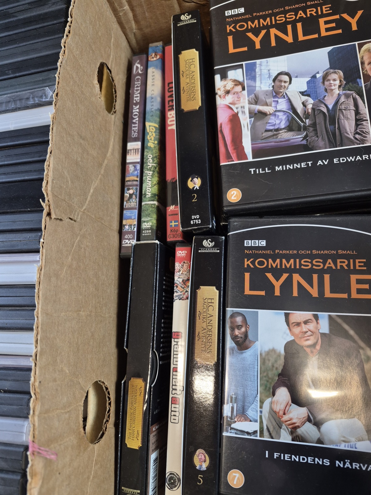 Bilder Parti DVD filmer 3 st lådor, bl.a Morden i midsommar, HC Andersen och Mad Men