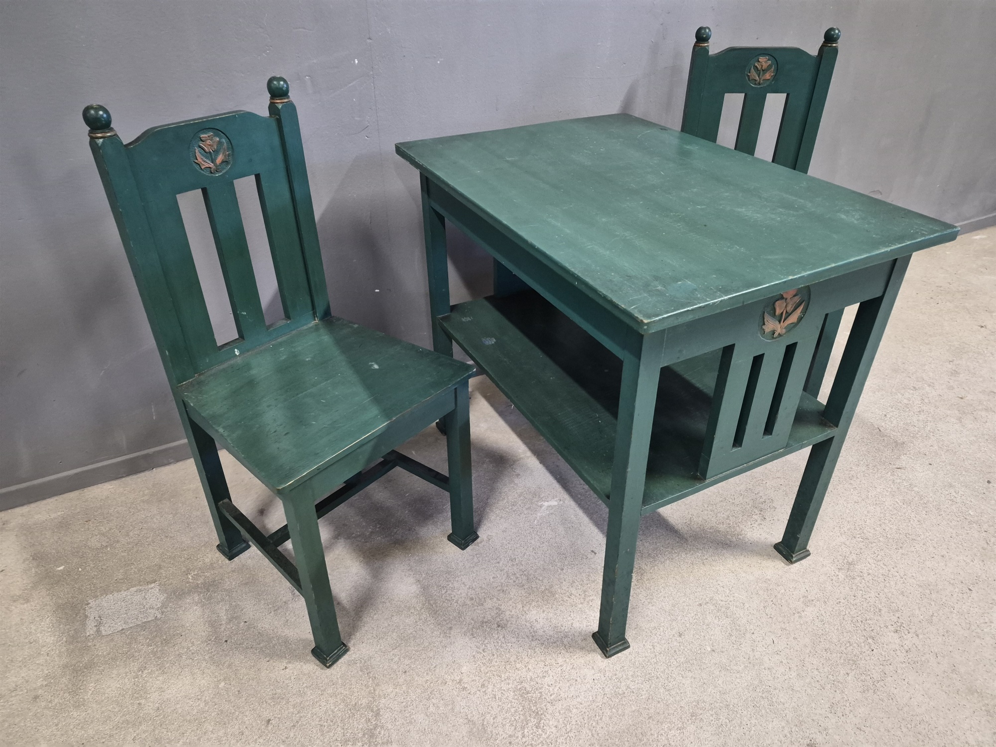 Stolar 1 par & bord, jugend, höjd stolar 96 cm, bord 76 cm mått 62 x 90 cm