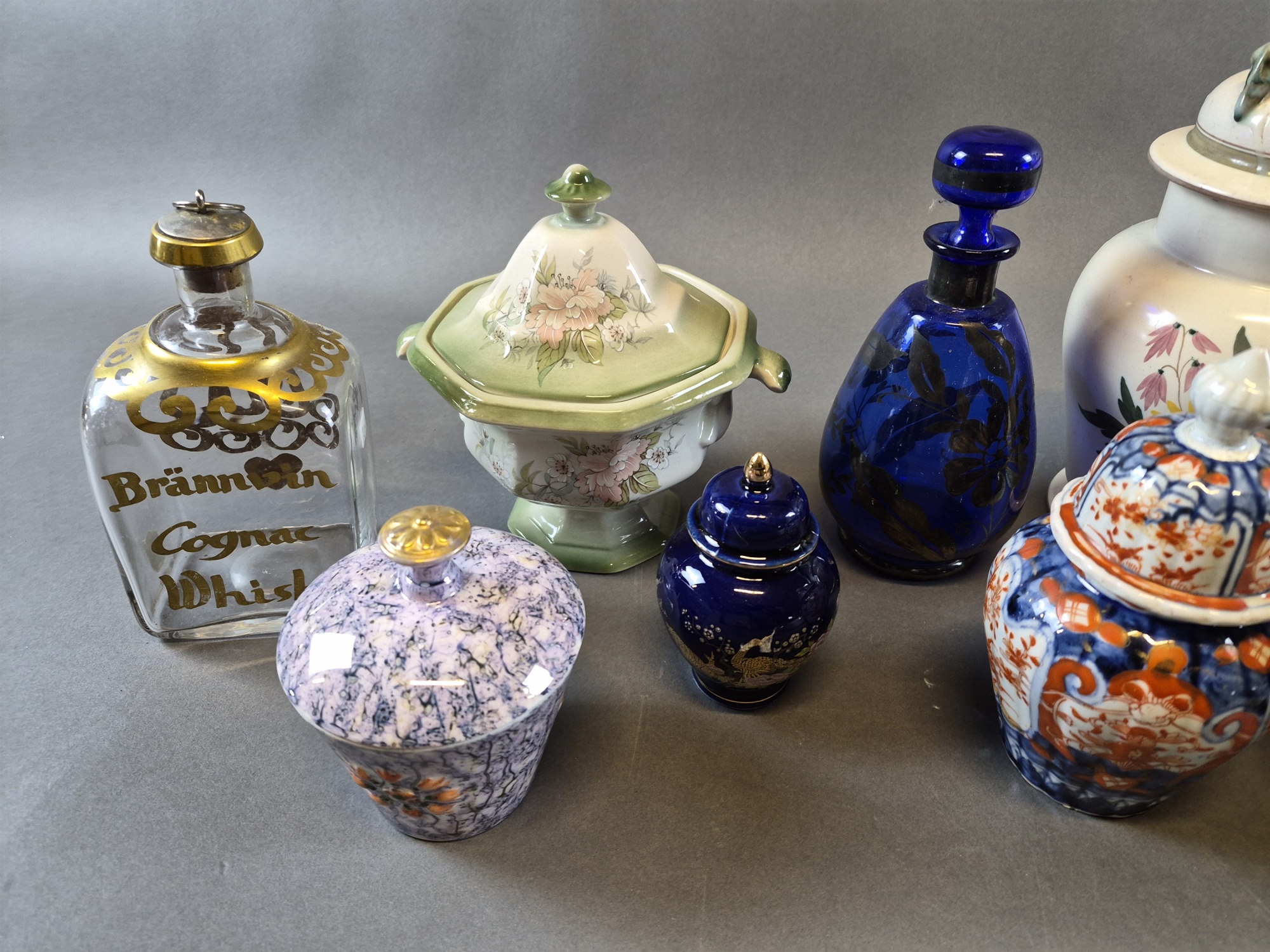 Parti keramik, lockurnor, vaser & brännvinsflaska glas, högsta 25 cm