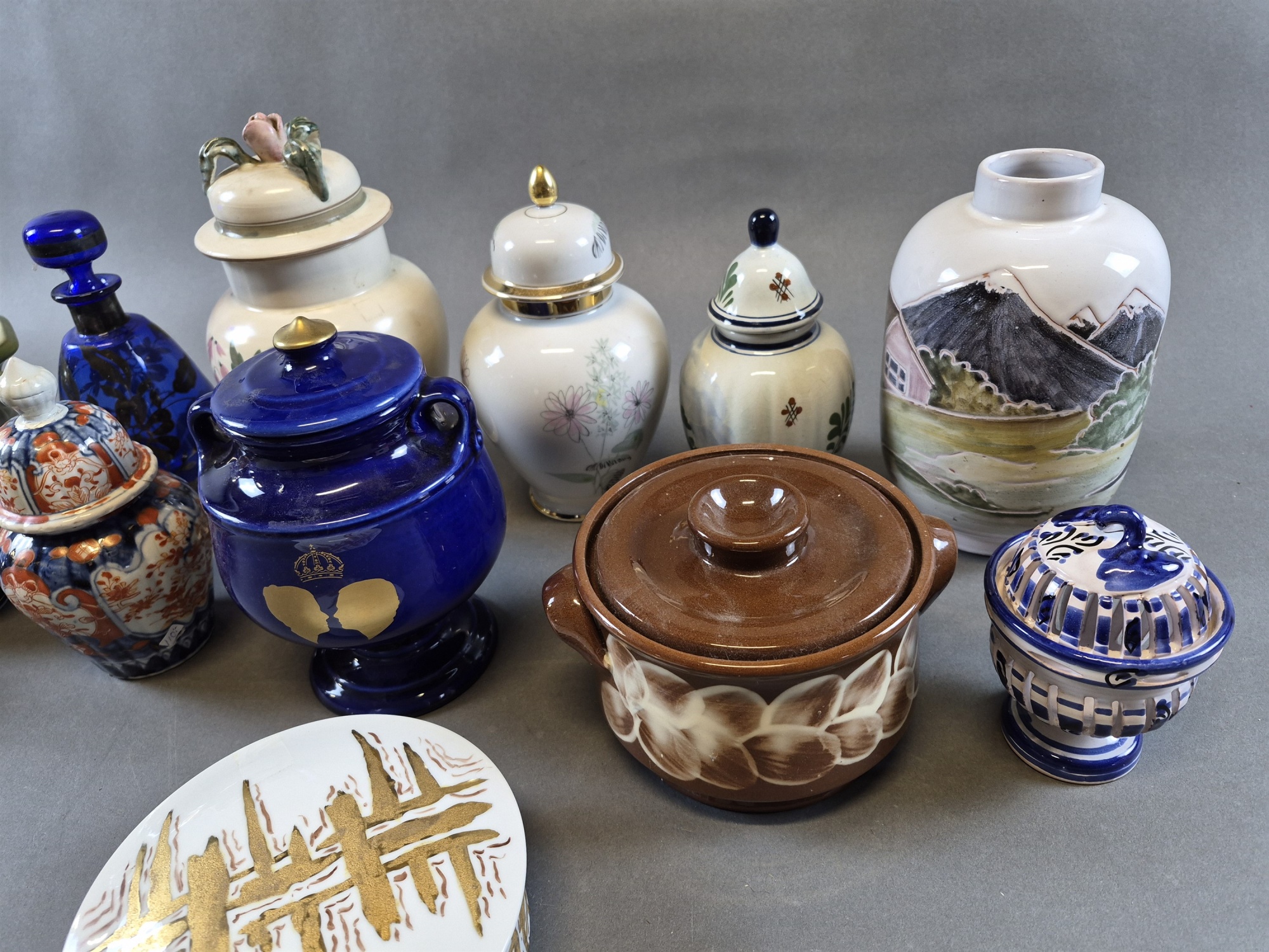 Bilder Parti keramik, lockurnor, vaser & brännvinsflaska glas, högsta 25 cm