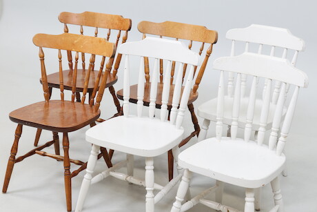 Pinnstolar 3 + 3 st, 1900-talets andra hälft, delvis ommålade