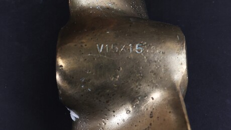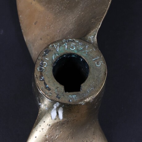 Auktioner Vapen & Militaria Tvåbladspropeller Brons, Diameter 39 cm, stigning 15x15, Axelöppning konisk 24,8mm till 22,2 mm