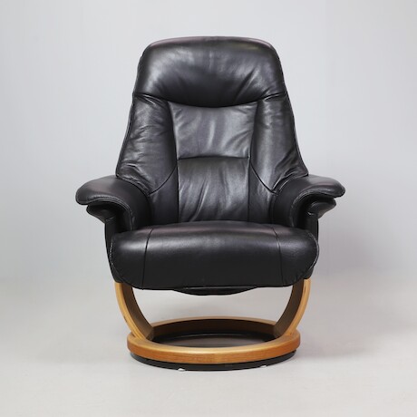 Snurrfåtölj, skinn och trä, Hjort Knudsen
