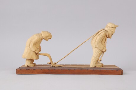 Träfigur John Olsson Jämshög + tygstycken Marimecco mm