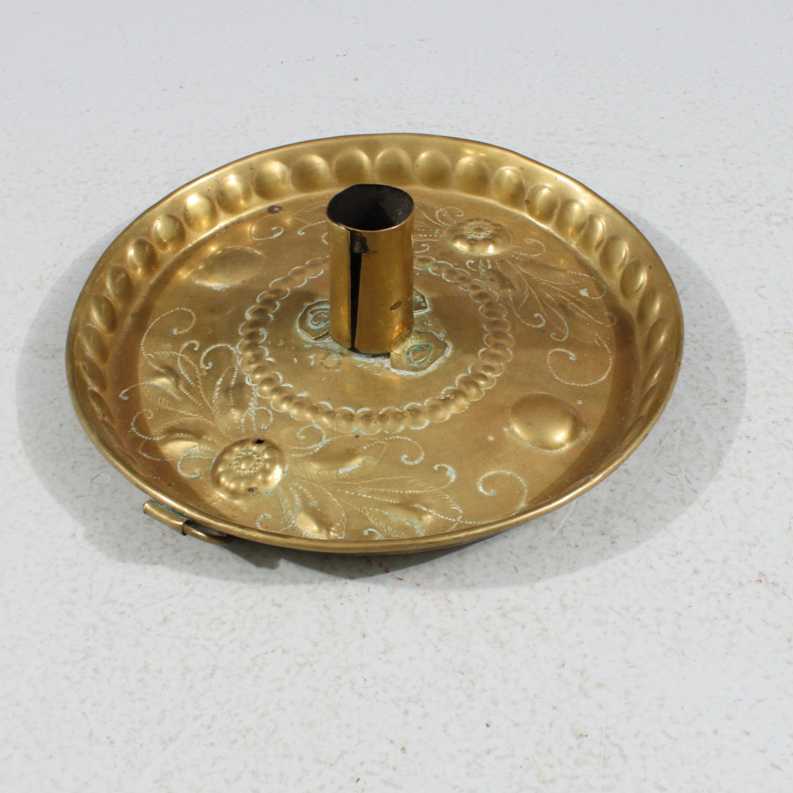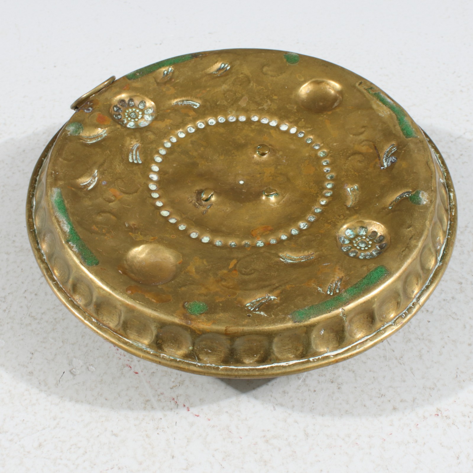 Mässing, dekor i relief, höjd ca:6 cm, diameter 20 cm. (vån3)
