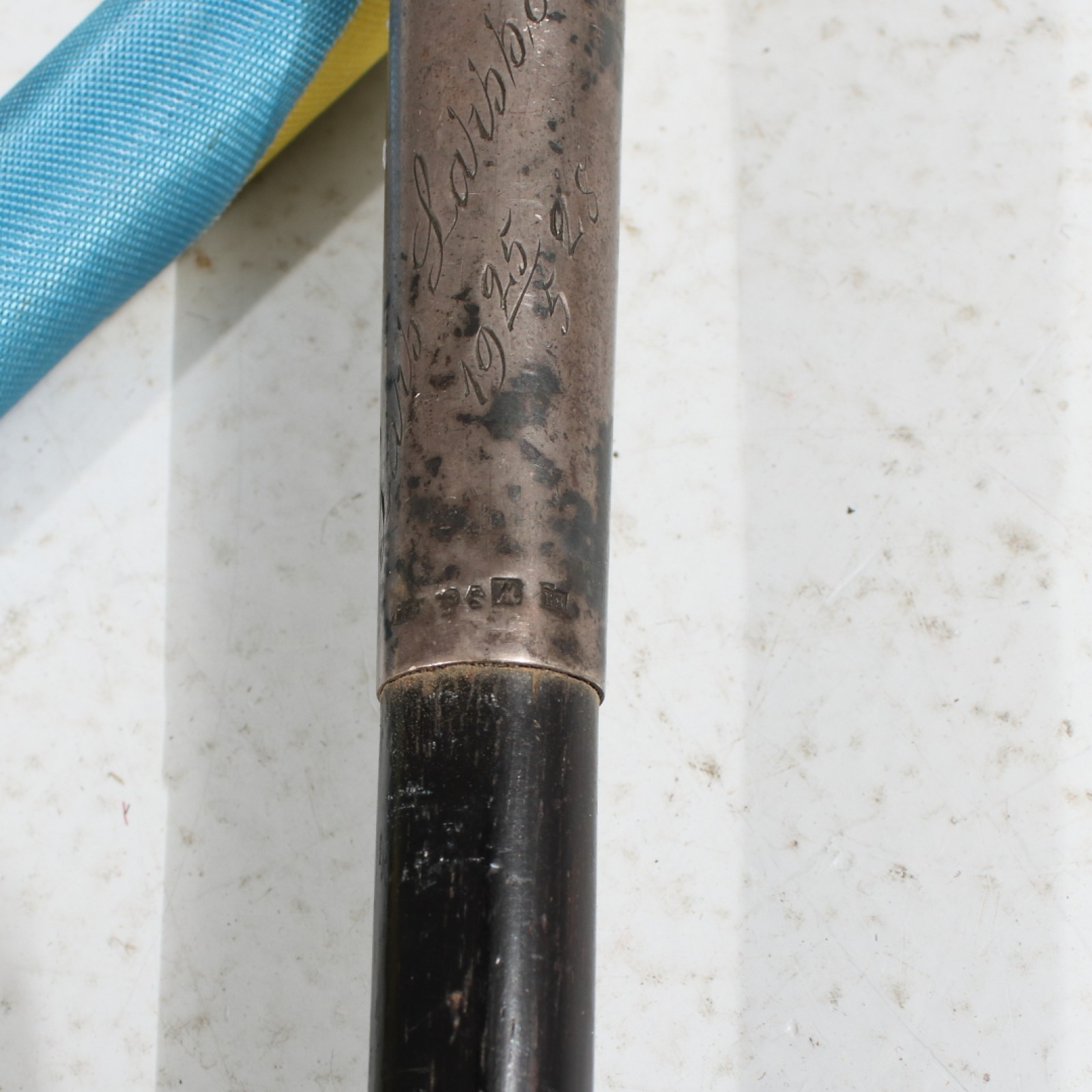 2 stycken, 1st med knopp i kontrollerat silver samt 1st med knopp i nysilver, längd 90,5-92 cm. (vån3)