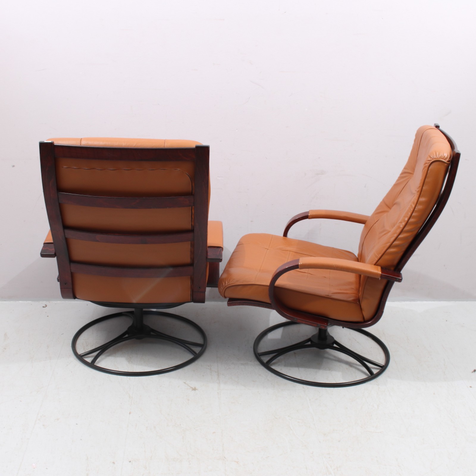 Ett par, snurr modell, brun skinn imitation, 1970/80-tal, Rh:93,5cm B:67cm Sh:41,5cm (Vån1)