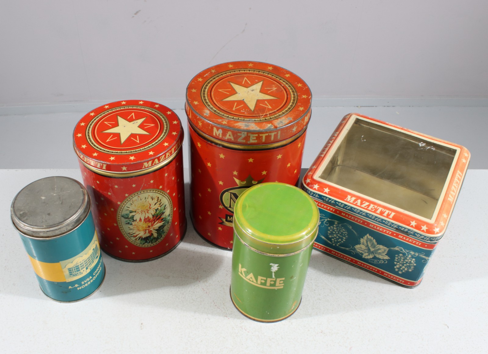 5 stycken, 3st Mazetti varav 1st med glaslock, höjd 14-25 cm. (vån3)