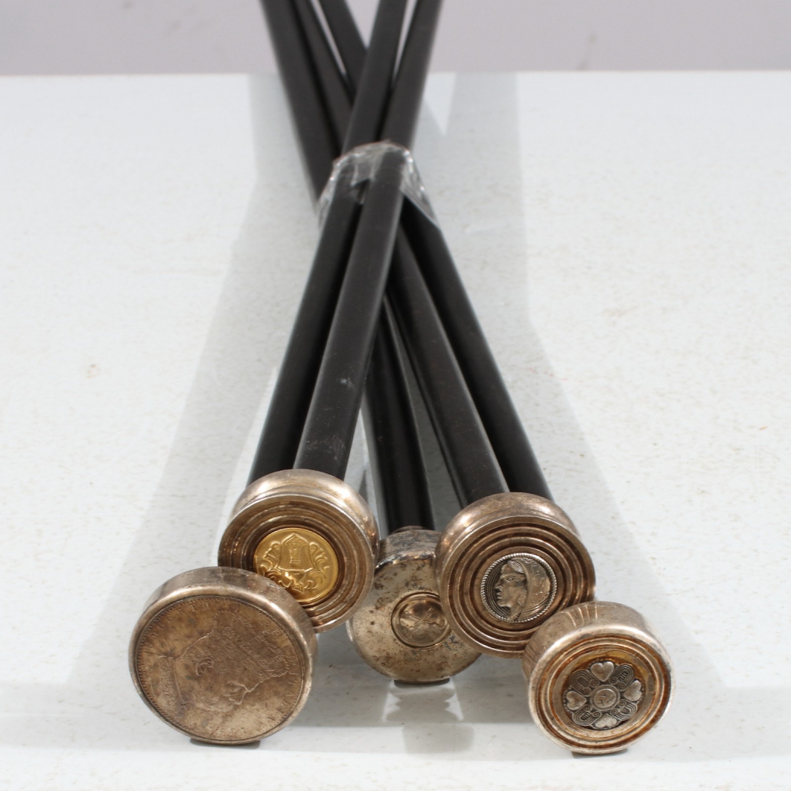 5 stycken, knoppar i nysilver, längd 90-93 cm. (vån3)