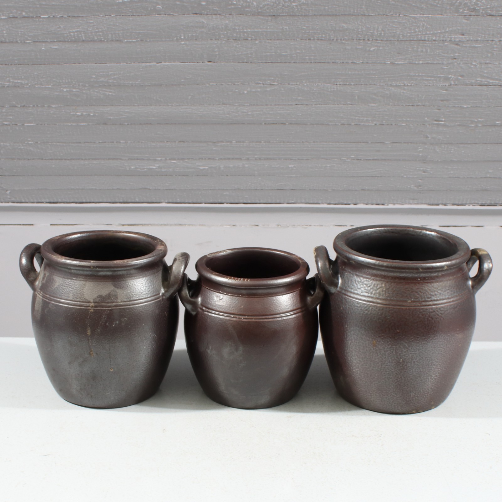 3 stycken, stengods, 4, 5 och 6 lit, höjd 20-24 cm. (vån3)