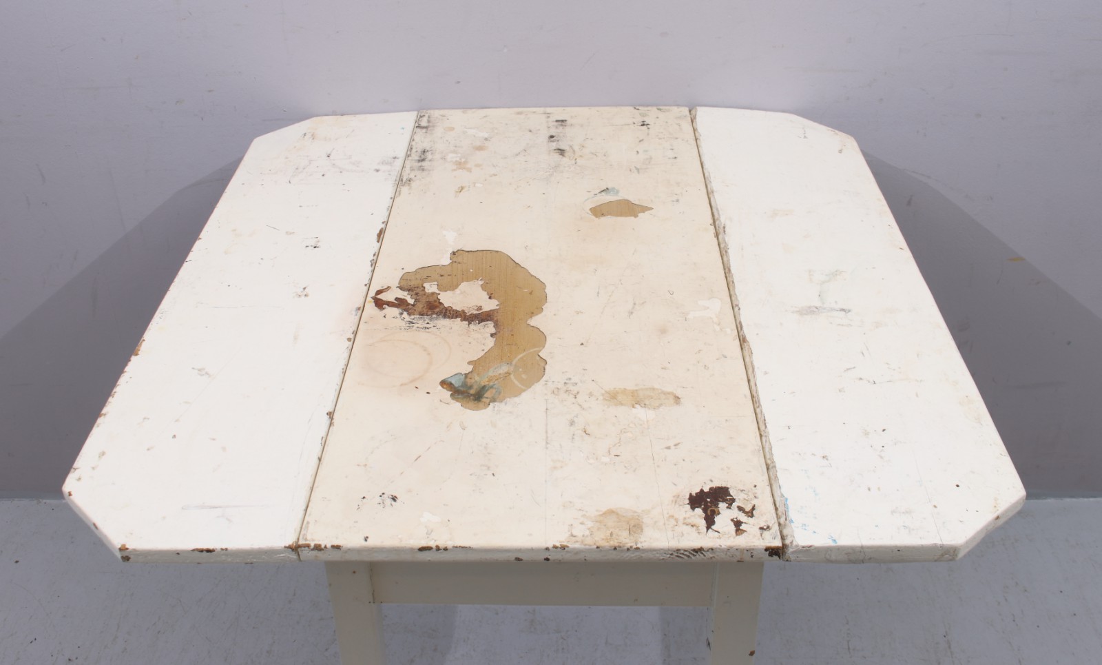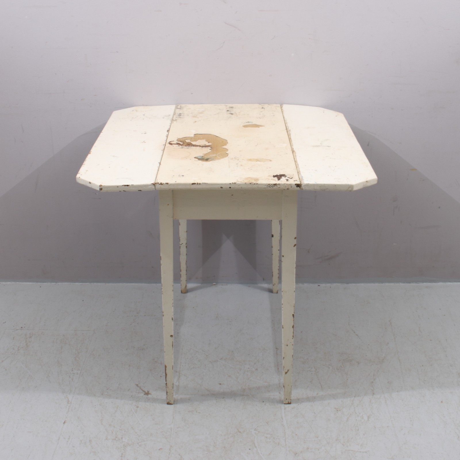 Bemålat trä, 1900-talets första hälft, senare bemålning, skiva med kraftigt färgslitage, H.75, L.92, B.39+22,5+22,5 cm. (vån1)