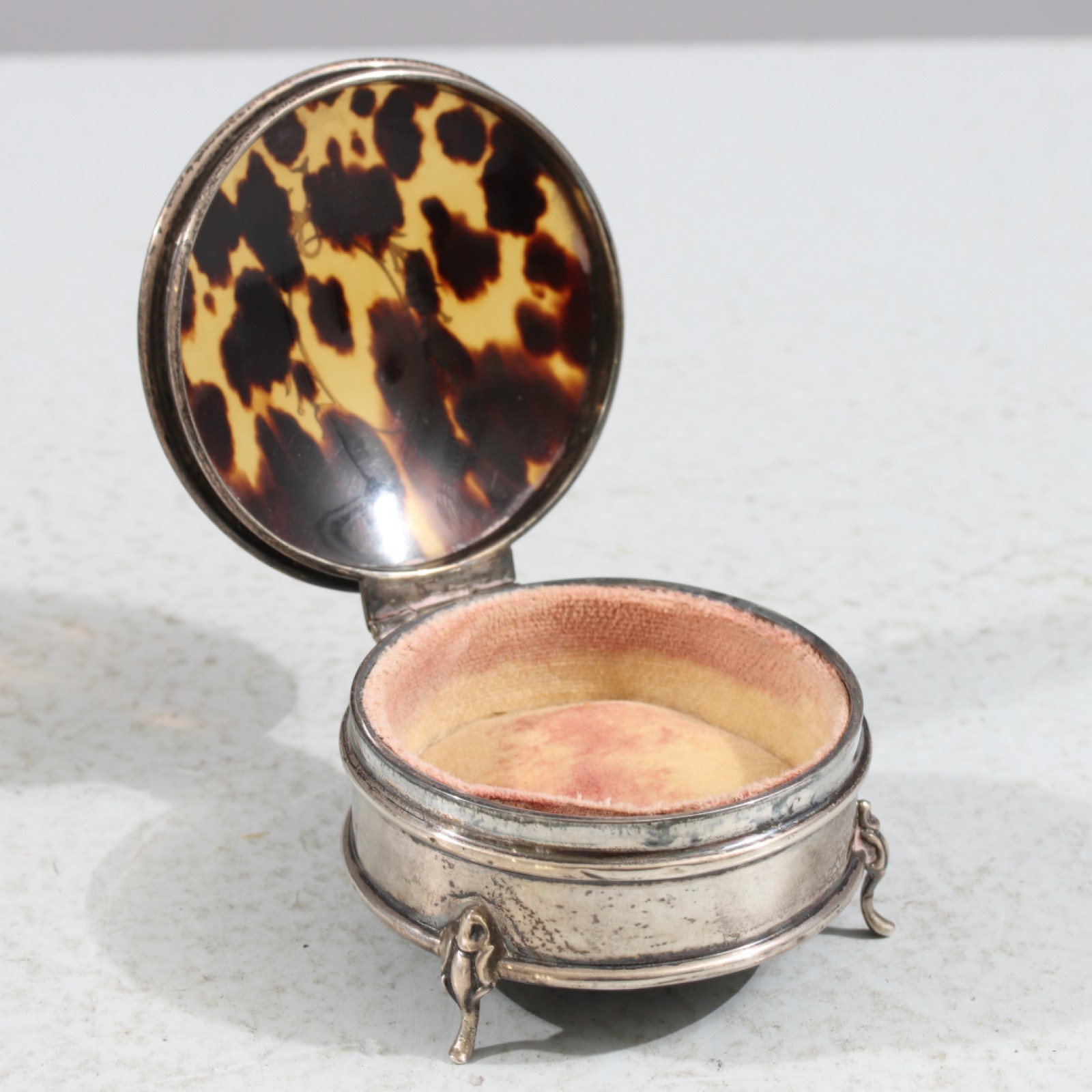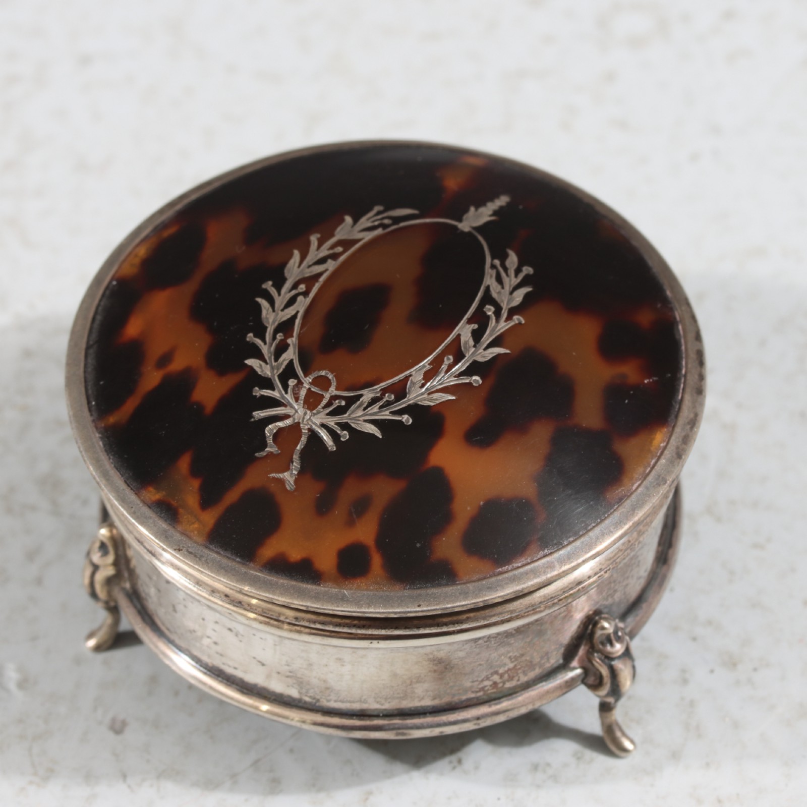 Kontrollerat silver, lock med sköldpaddsskal, 18,1900-tal, otydliga stämplar, höjd 4 cm, bredd 6 cm, bruttovikt 82,5 gram. (vån3)