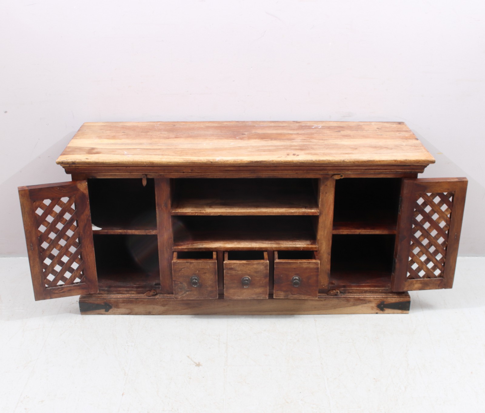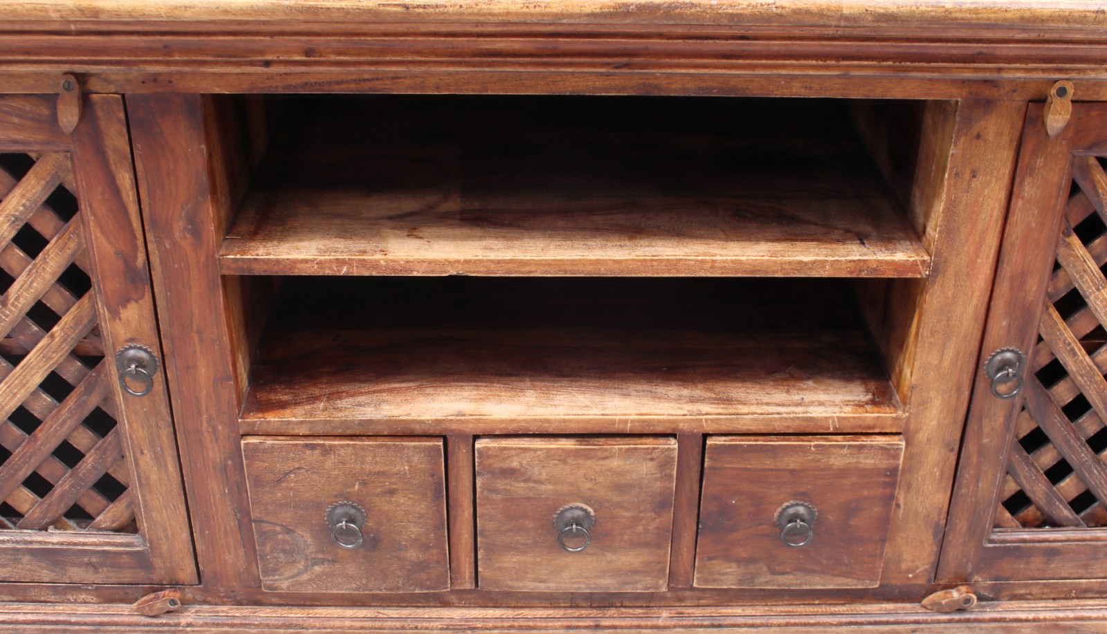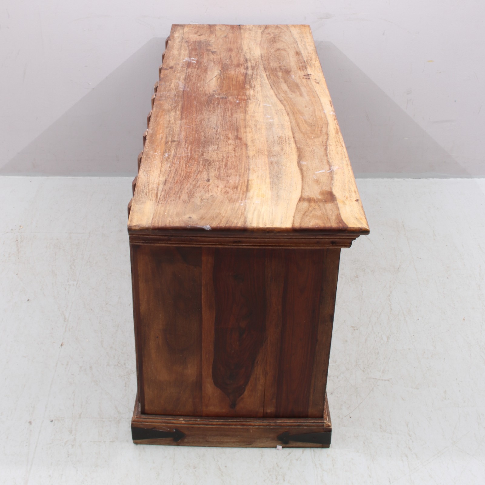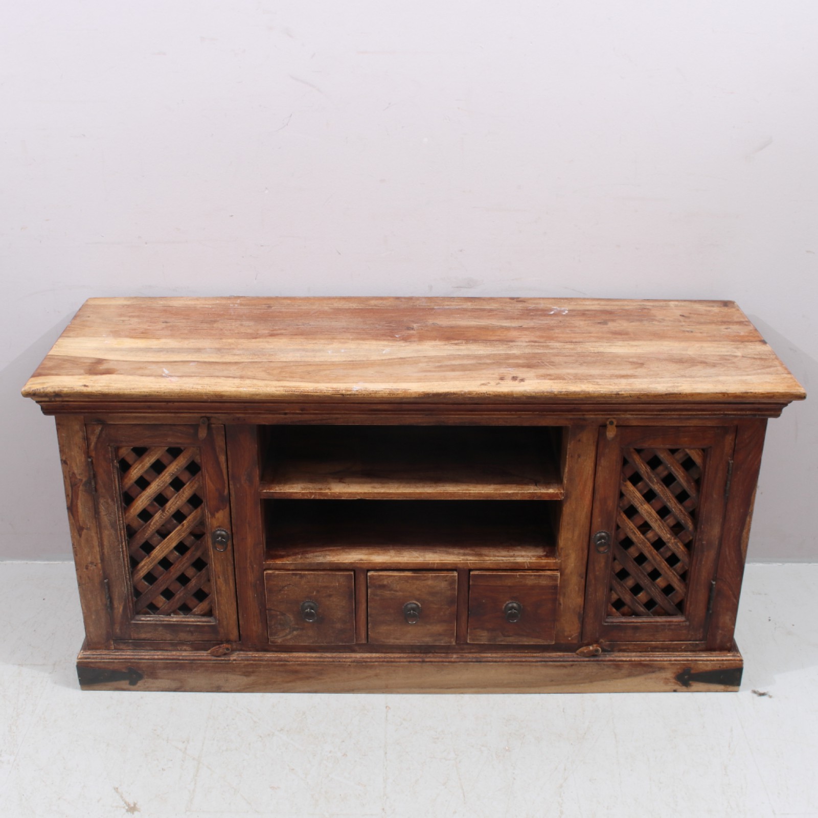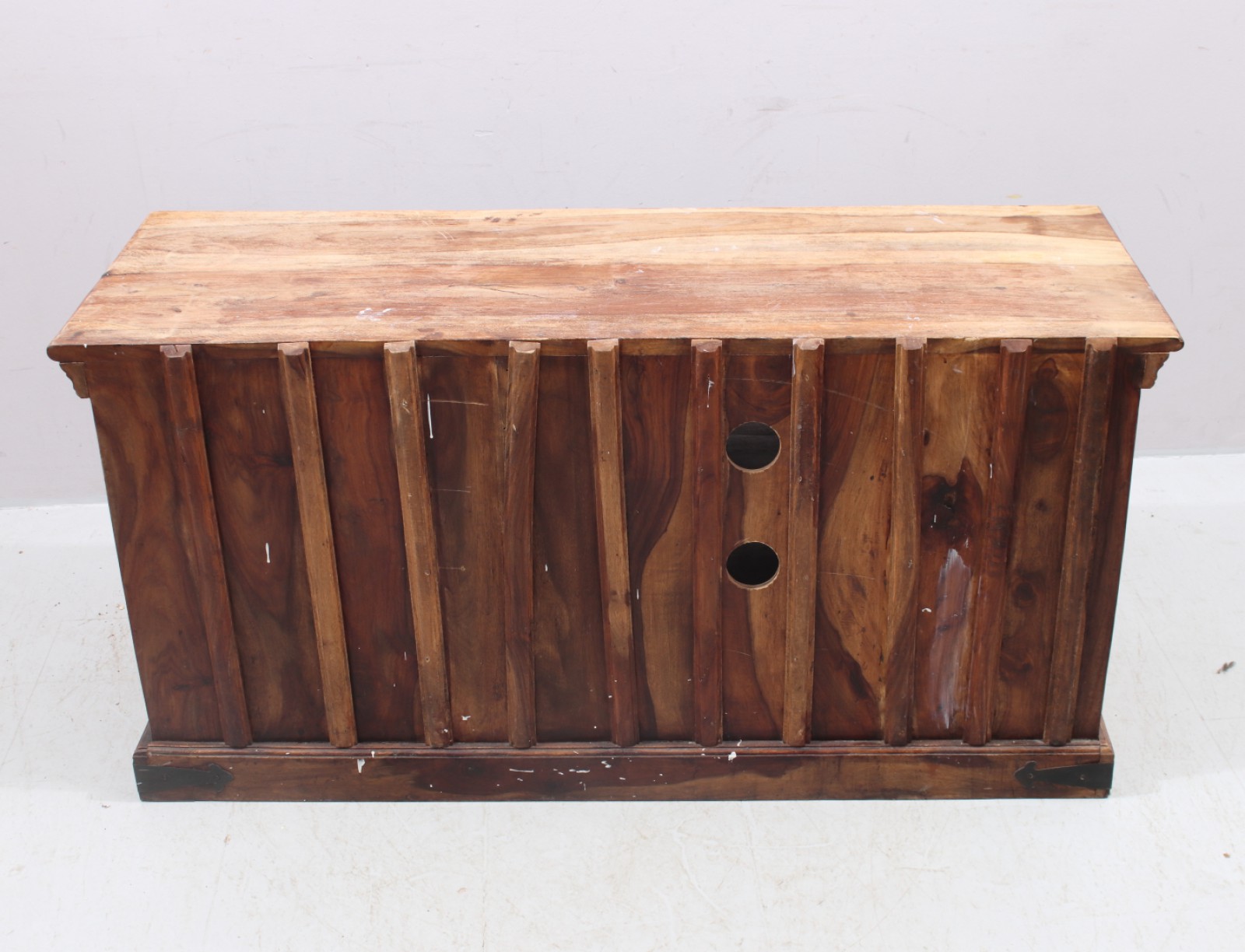 Lövträ, järn beslag, bakstycke med hål i för kablage, bruksslitage (Se bilder), H:63,5cm B:130cm Dj:47,5cm (Vån1)