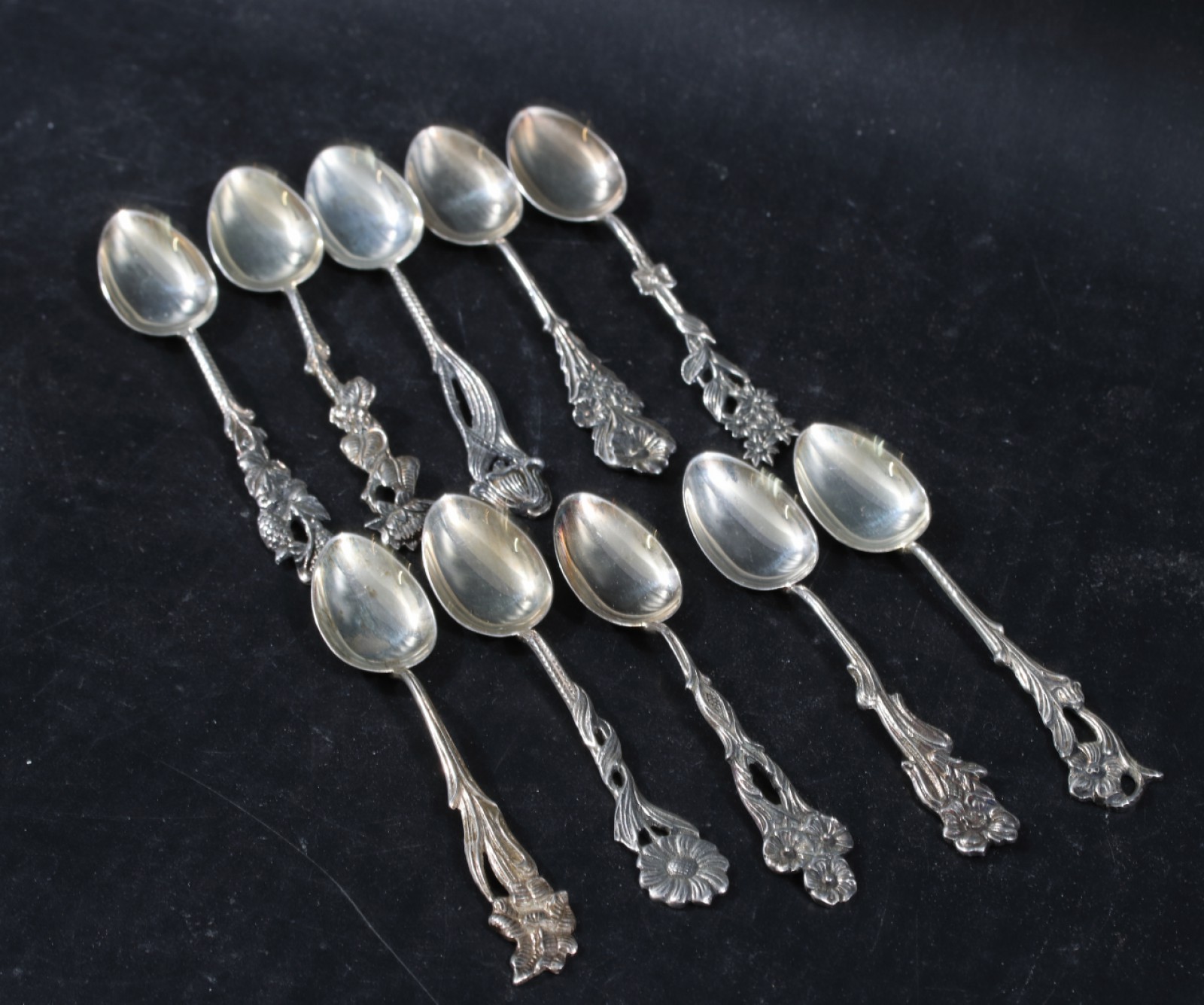10 stycken, kontrollerat silver, GEWE, Malmö, längd ca: 9,8-10,3 cm, vikt 90 gram. (vån3)