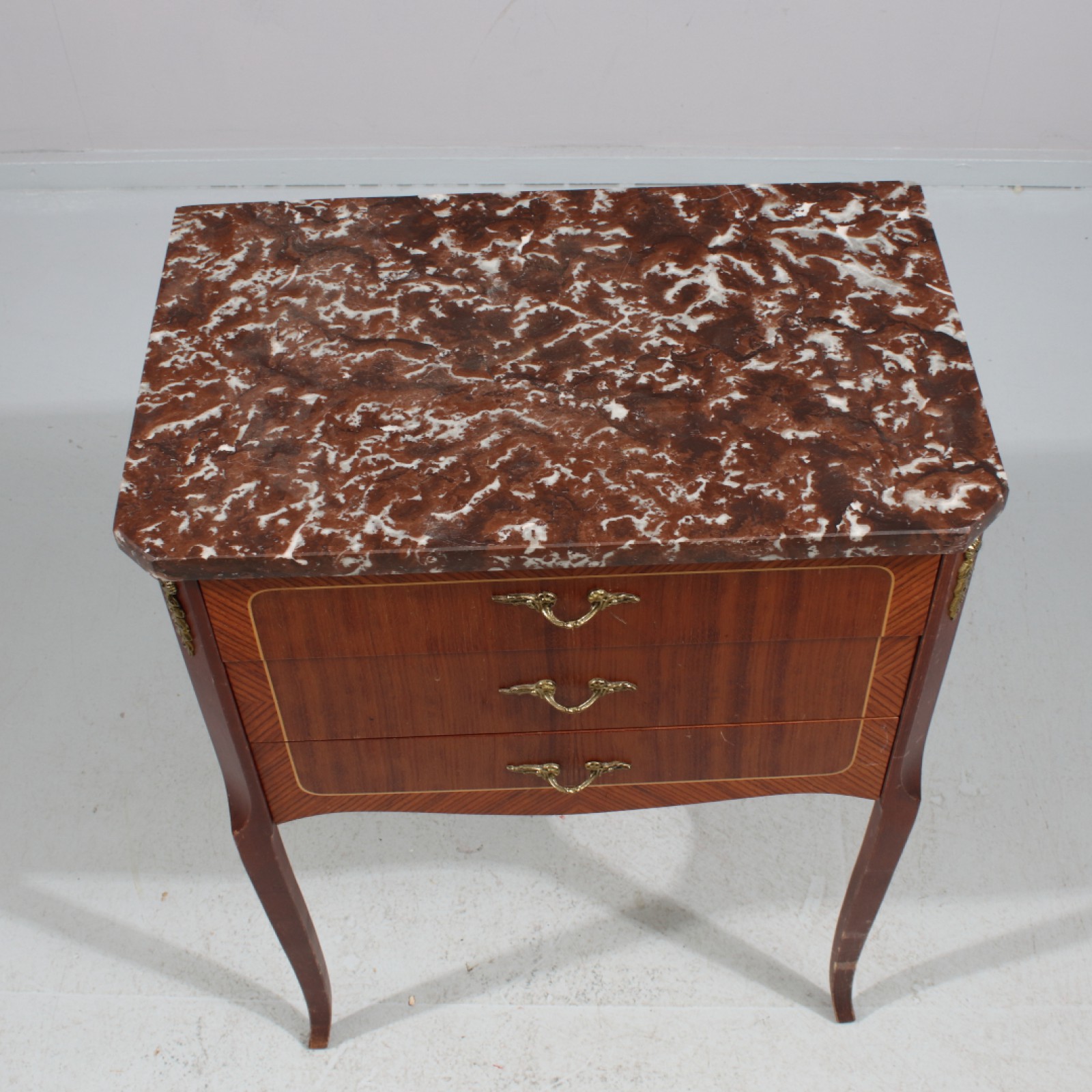 Fanerad med lövträ, skiva i marmor, 1900-talets andra hälft, H.70, B.50, Dj.31 cm. (vån3)