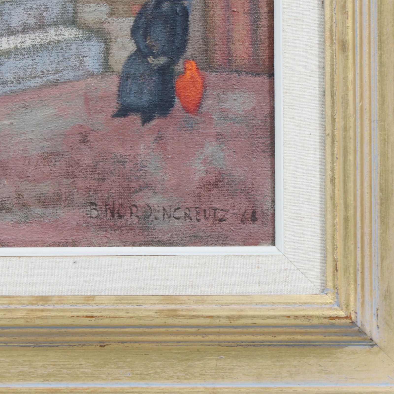 Olja på duk, "Sydländskt bymotiv", signerad samt daterad -68, ram 55x47 cm, bild 34x26 cm. (vån3)
