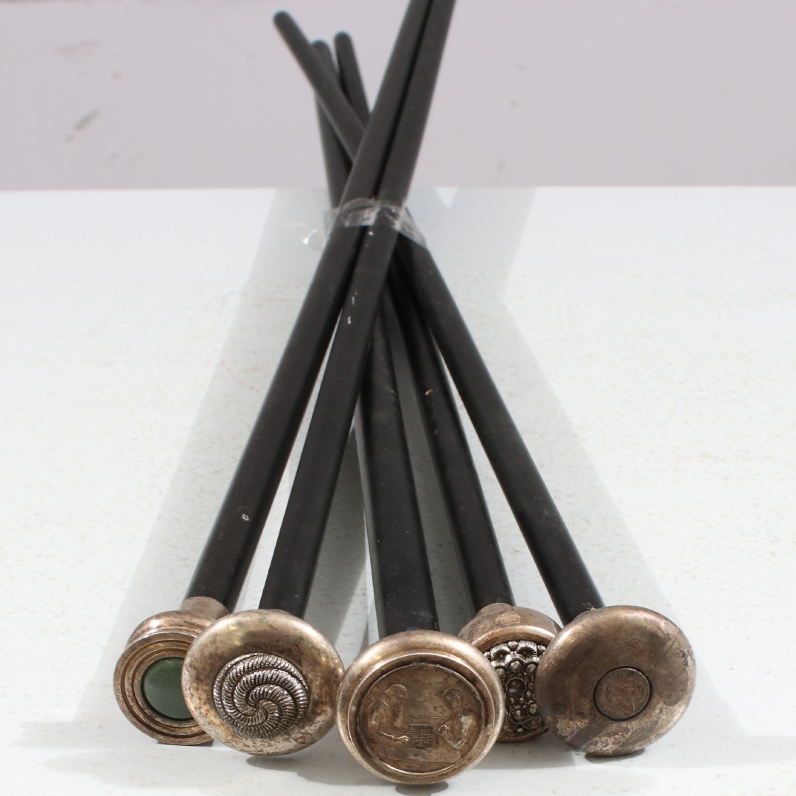 5 stycken, knoppar i nysilver, längd 90-93 cm. (vån3)