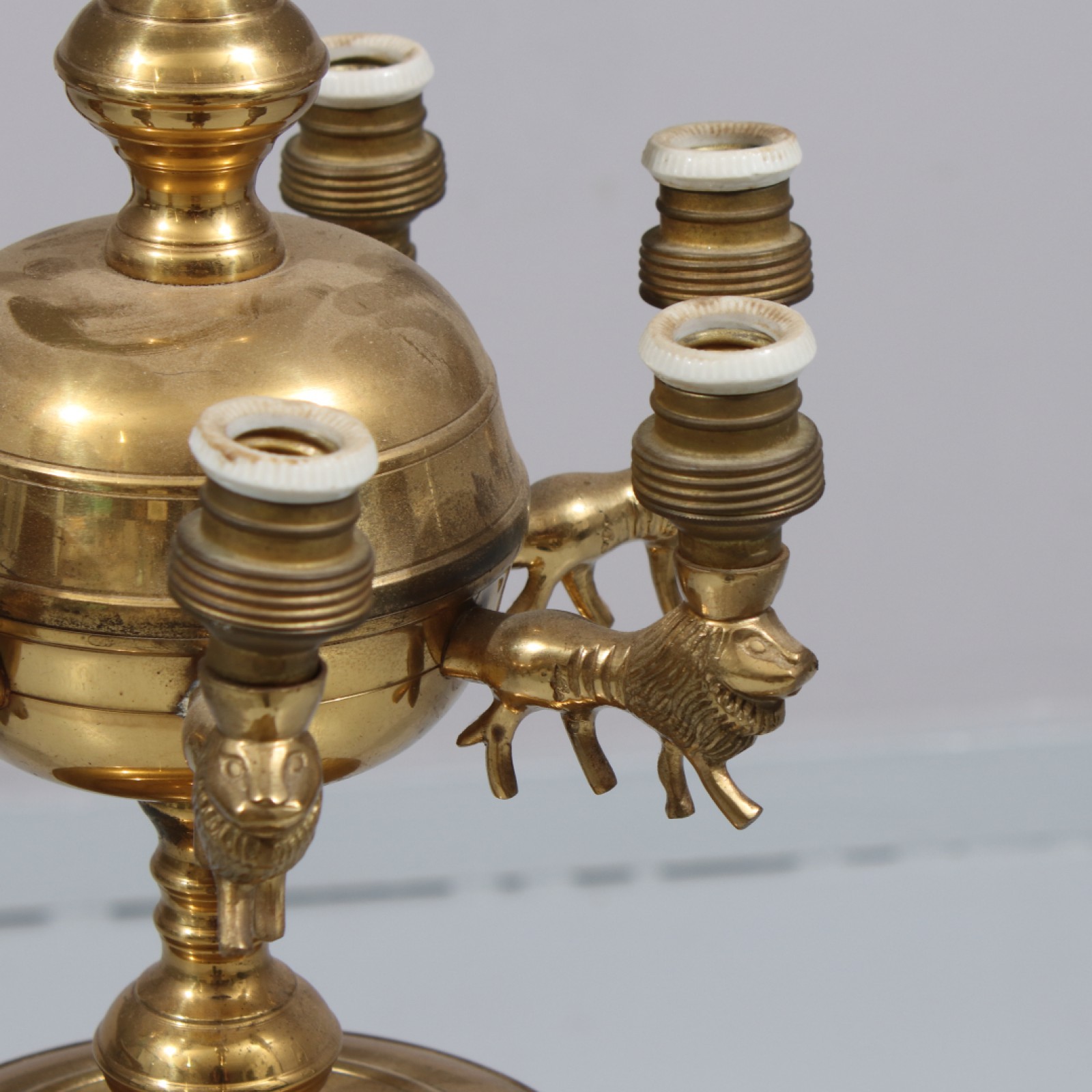 Mässing, 7st elektriska ljusarmar, höjd 114 cm. (vån2)