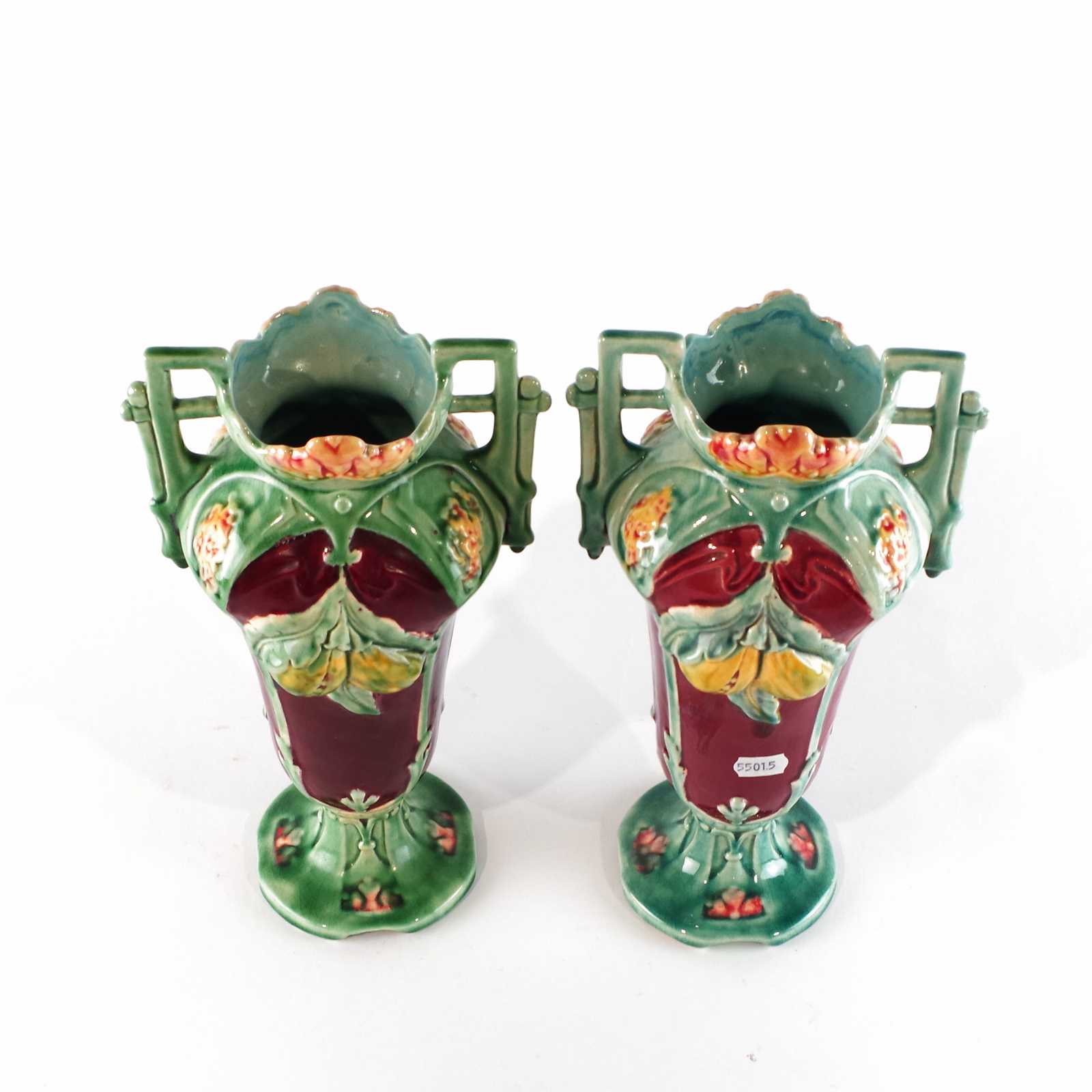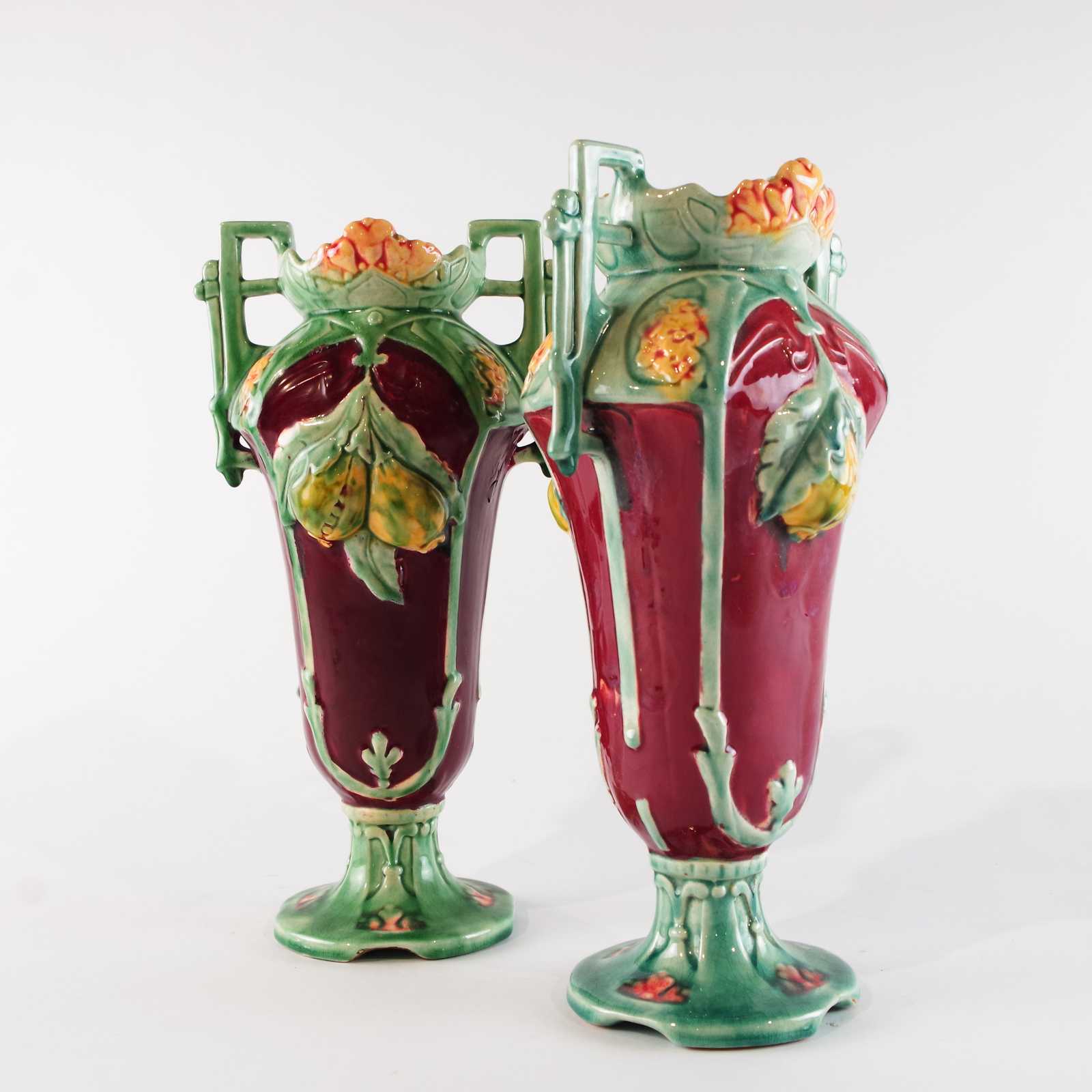 VASER 1 par. Jugend, tidigt 1900 tal, majolika. H:28cm.
