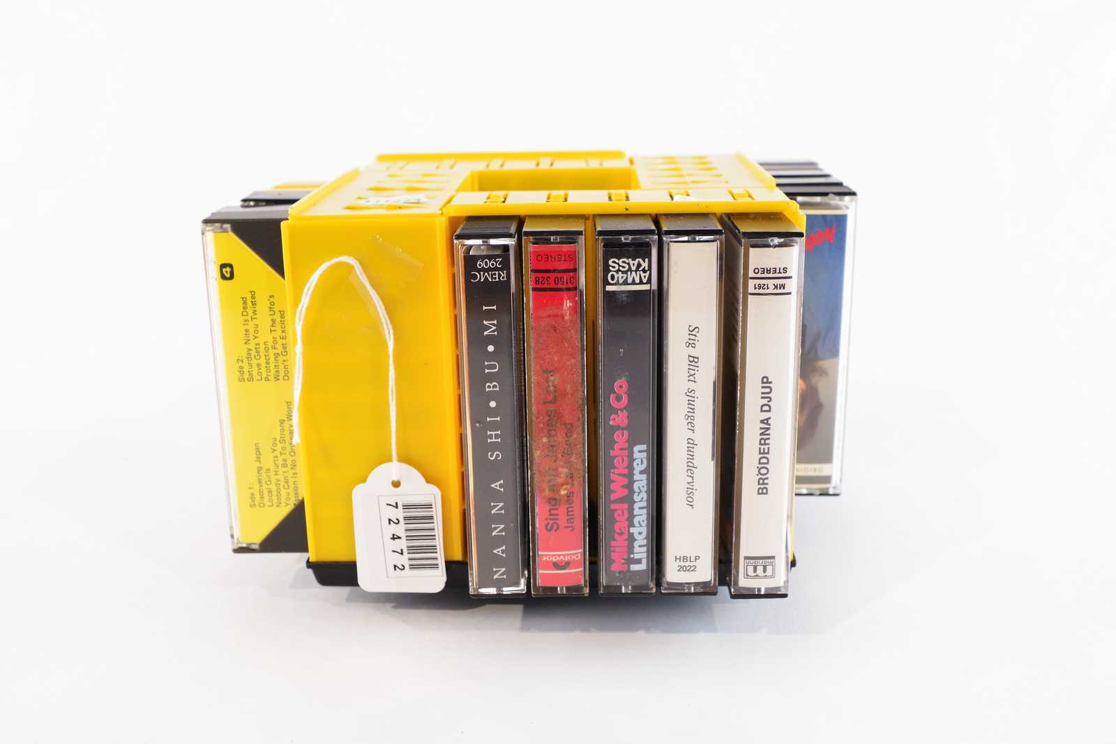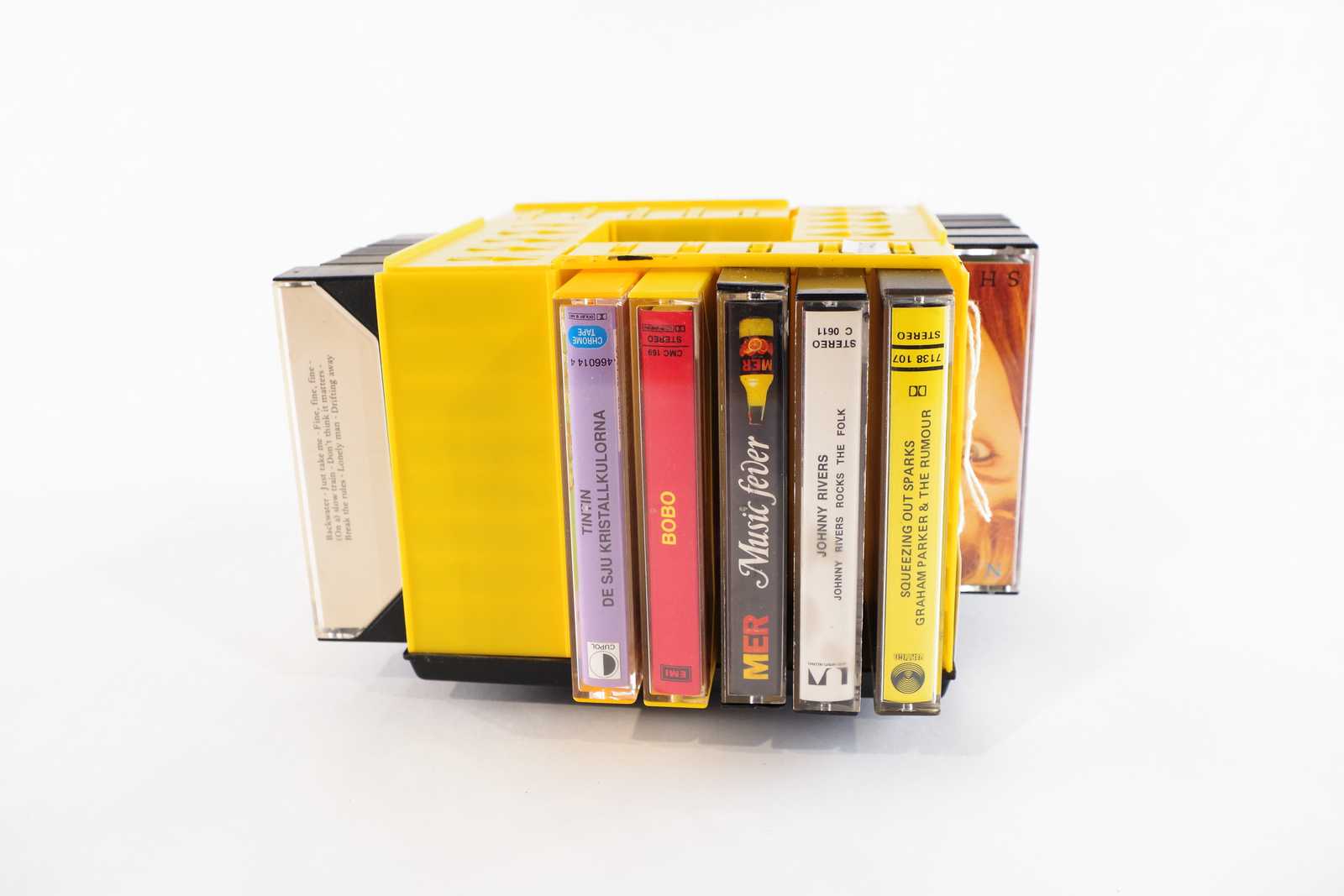 KASETTBANDSNURRA äldre med innehåll. H:13cm B:20cm.