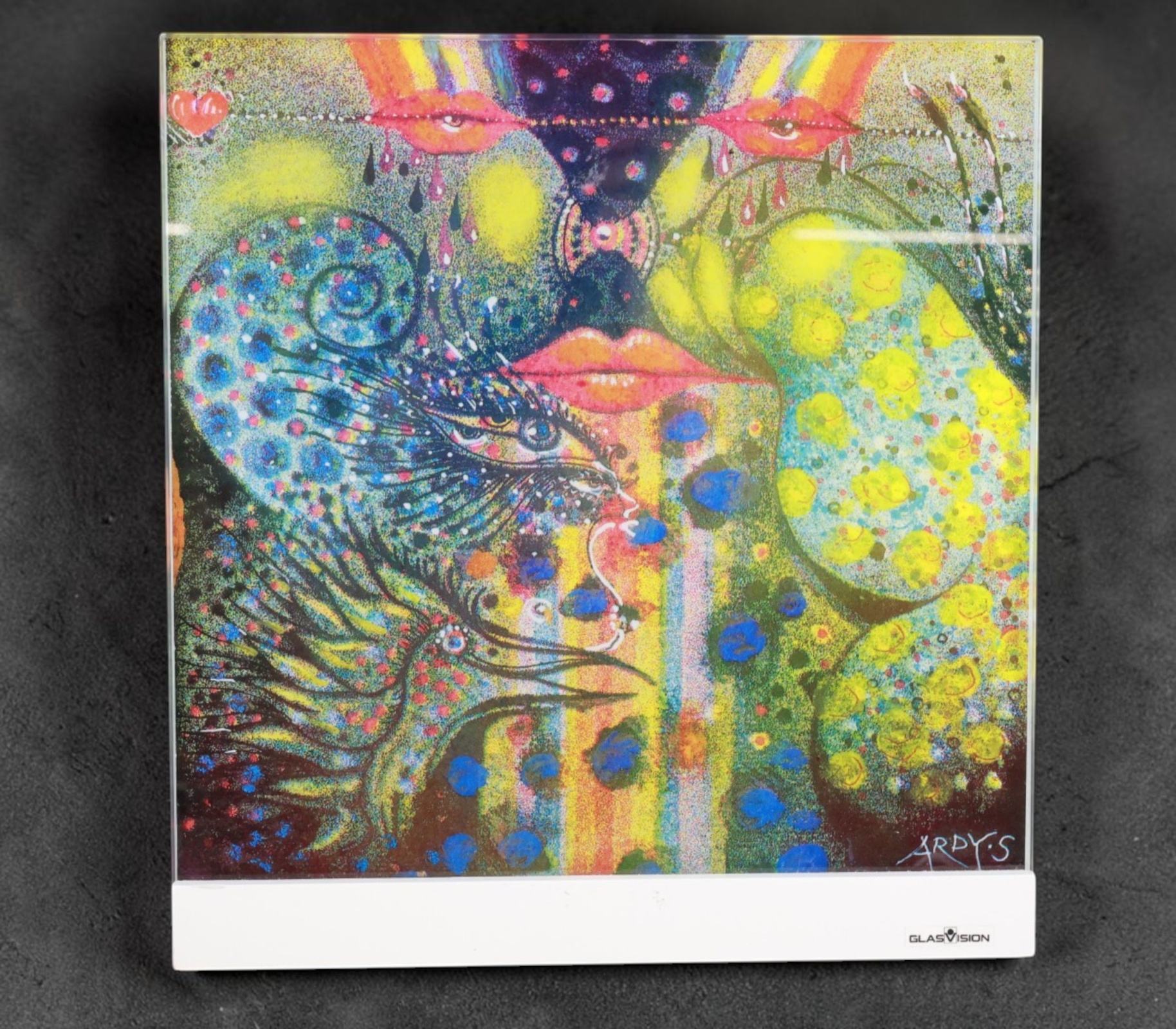 För Glasvision. Glastavla med ljussockel, fungerar