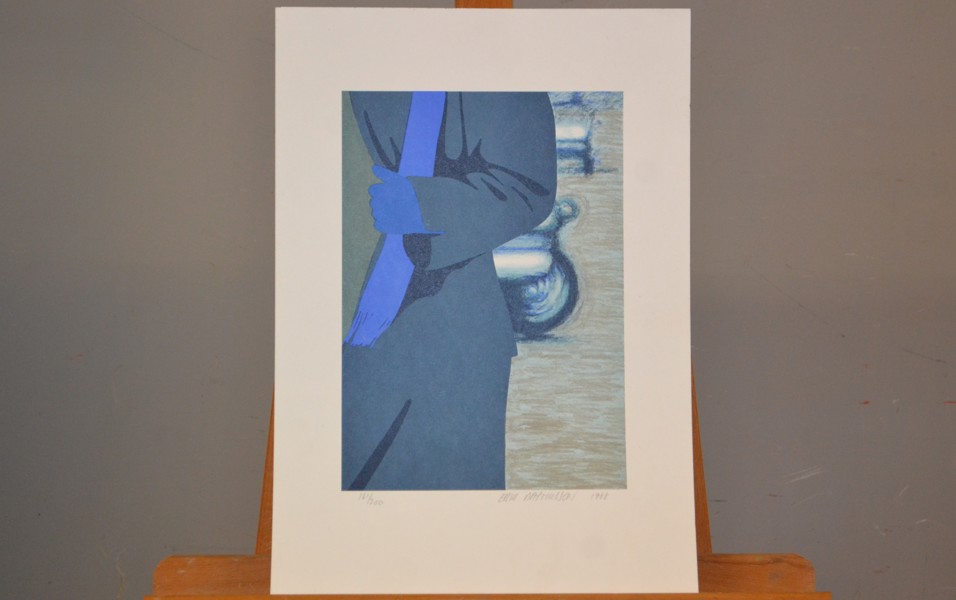 Auktioner Konst & Grafik ERIK RASMUSSEN. Litografi, "Fodgaenger med blå handske", signerad, daterad 1988 & numrerad 161/200, oramad, löst blad.