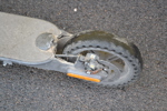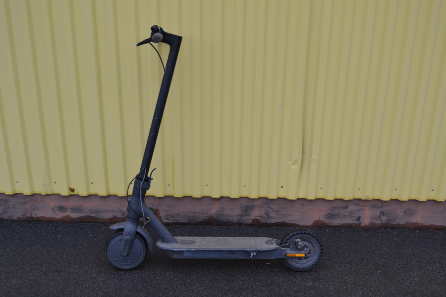 Bruksslitage, saknar bakbroms, handbroms tar inte, saknar laddare, slitna däck.