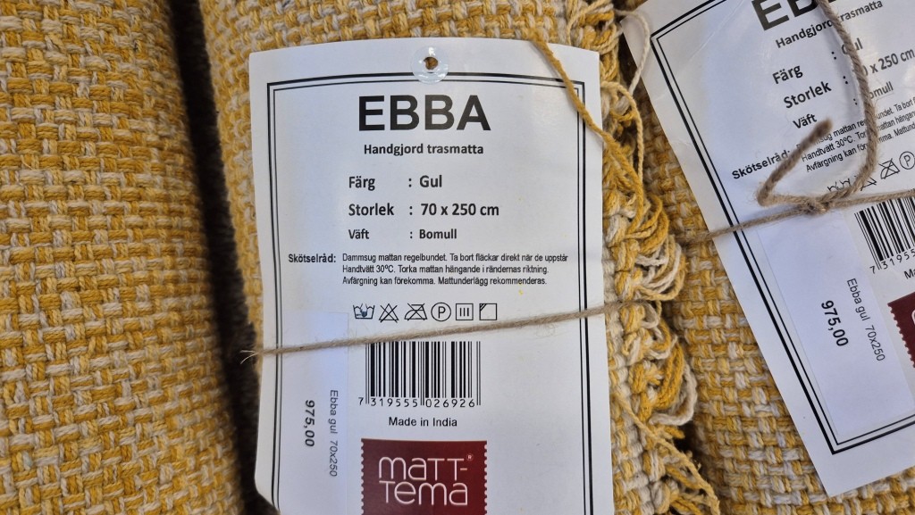 Handgjord trasmatta Ebba GulStorlek1st 70x200cm2st 70x250cm1st 70x300cm