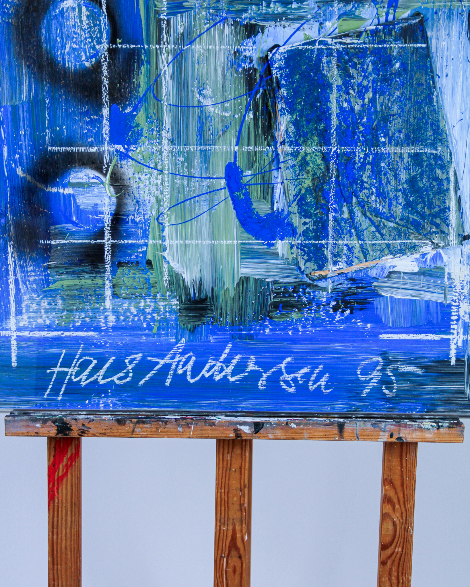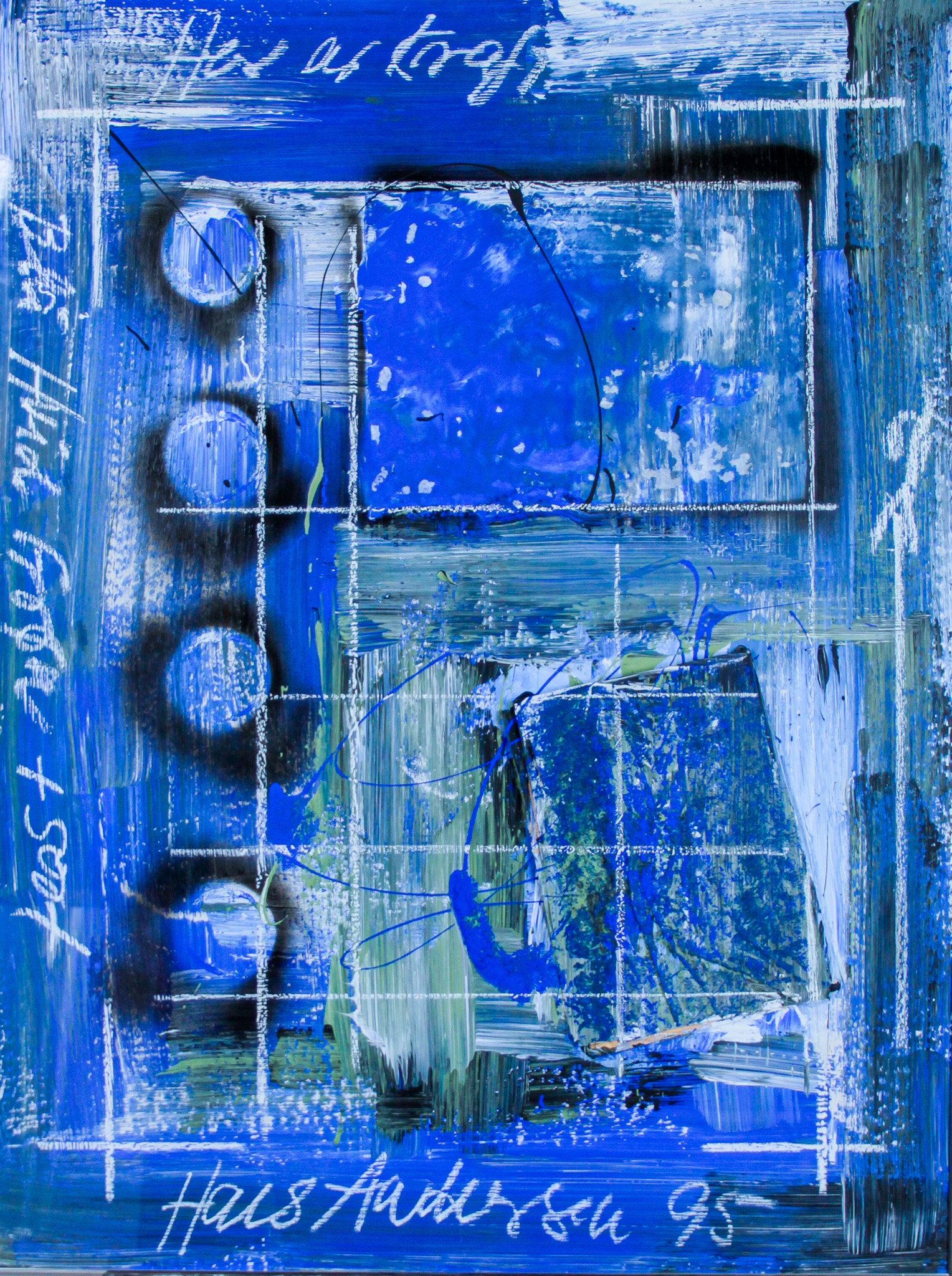 Blandteknik och collage, "Blå Hvidt Grøn + Sort", Hans Andersen, 1995