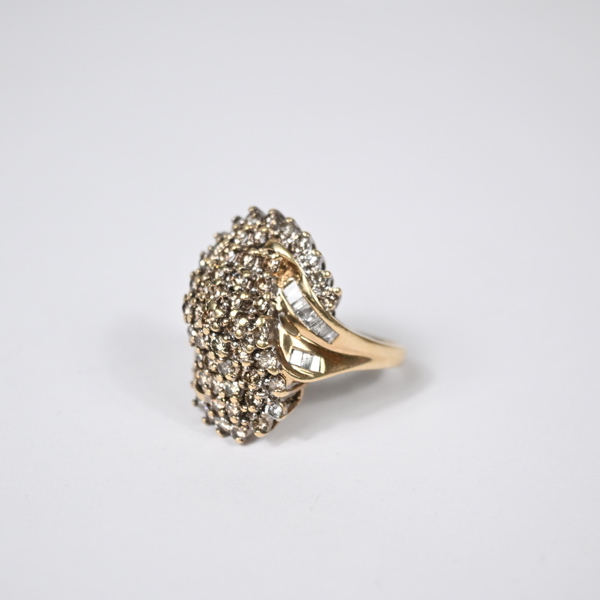 Klusterring i 10k guld, med diamanter, 1960/70-tal.