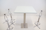 Bilder Bord, metall/glas, samt barstolar, 3 st, höj/sänkbara, metall/plast.