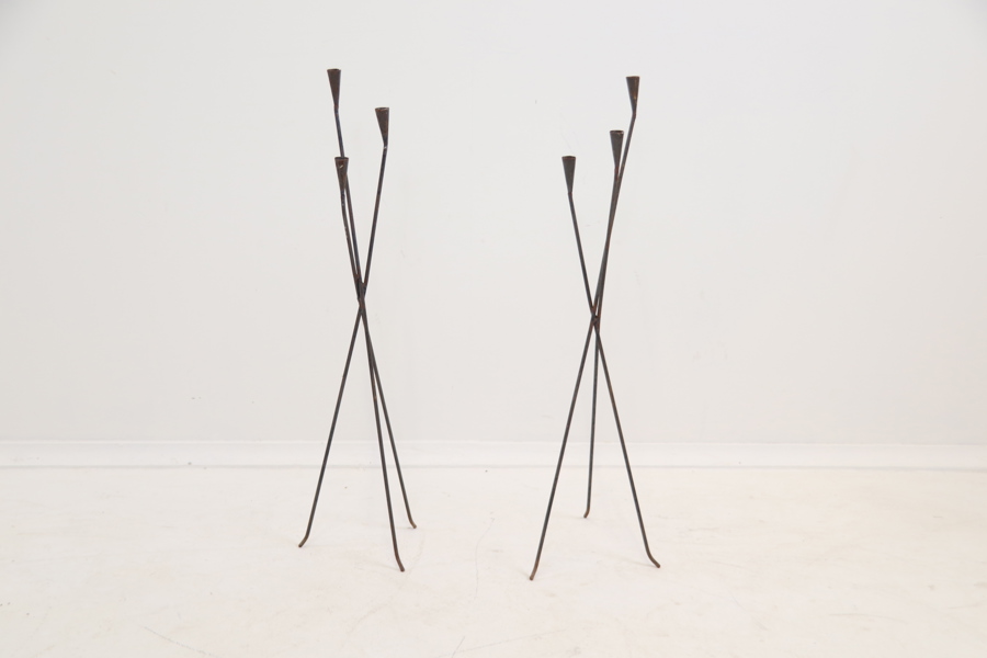 Golvljusstakar, 2 st, för 3 ljus, smide.
