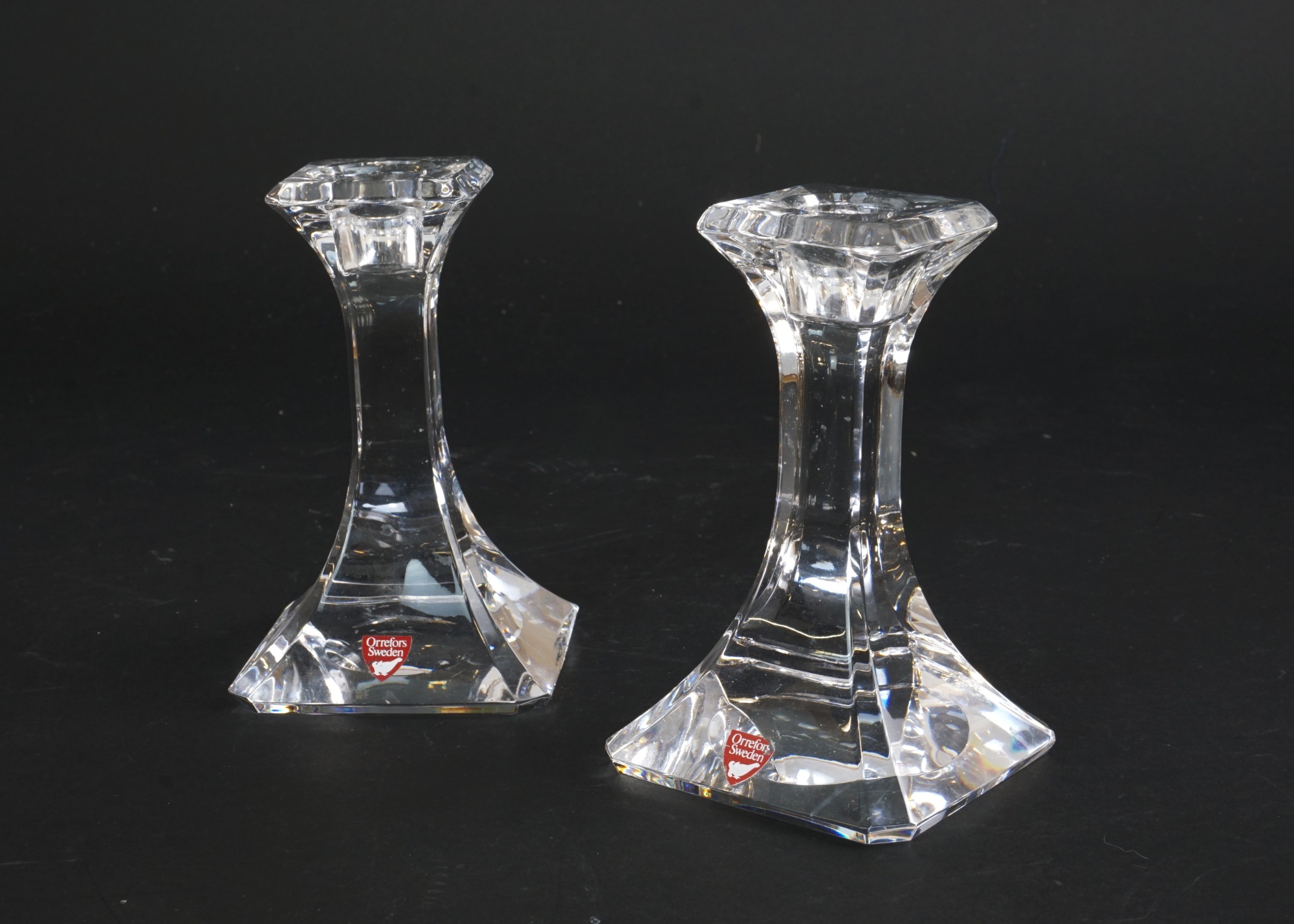 Ljusstakar, Orrefors Sweden med ljusmanschetter.