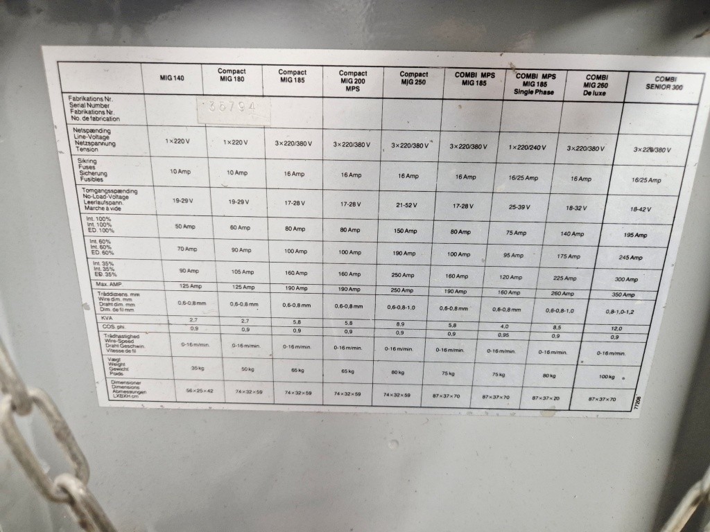 Mig-svetsModell: MIG180Funktionstestad: Ok
