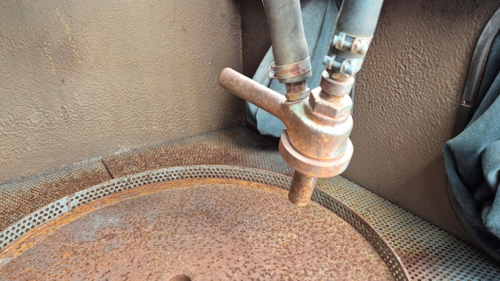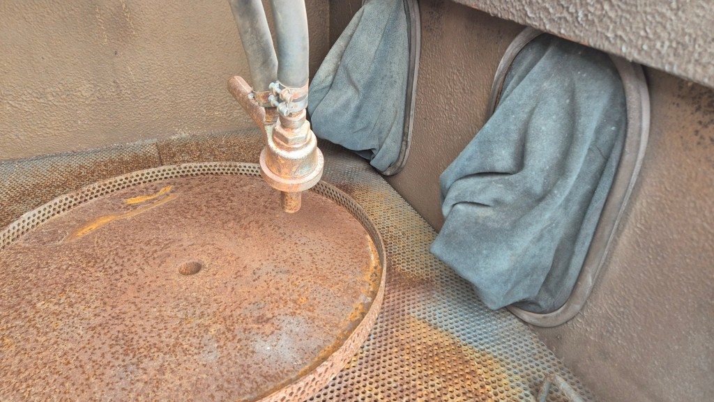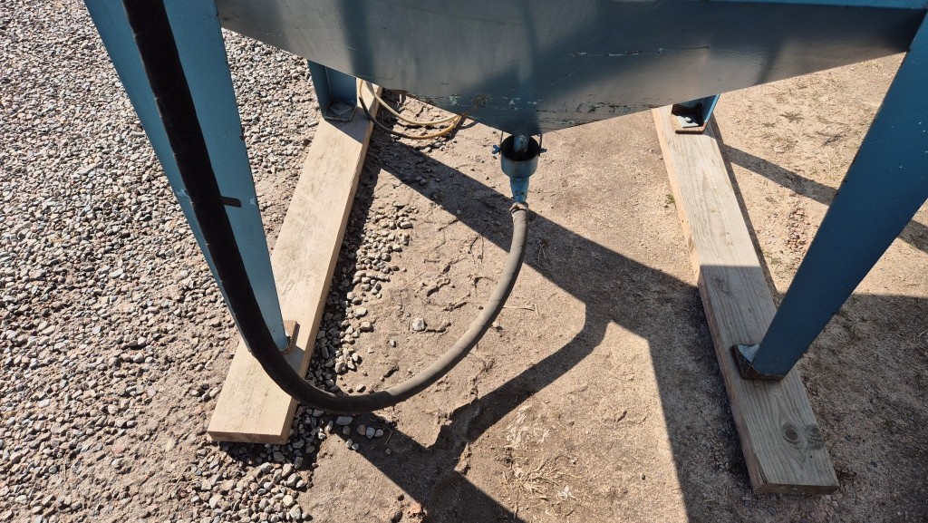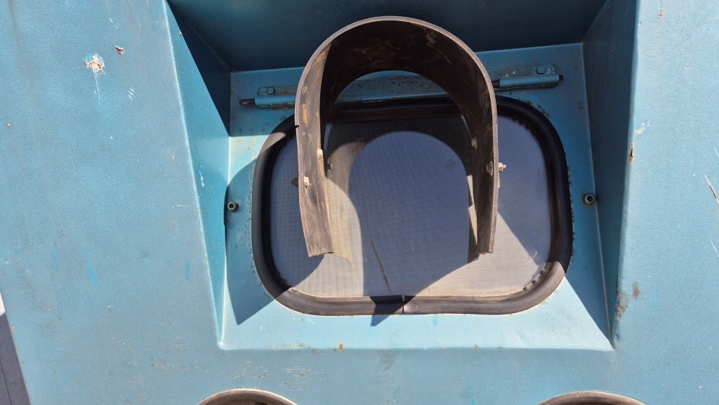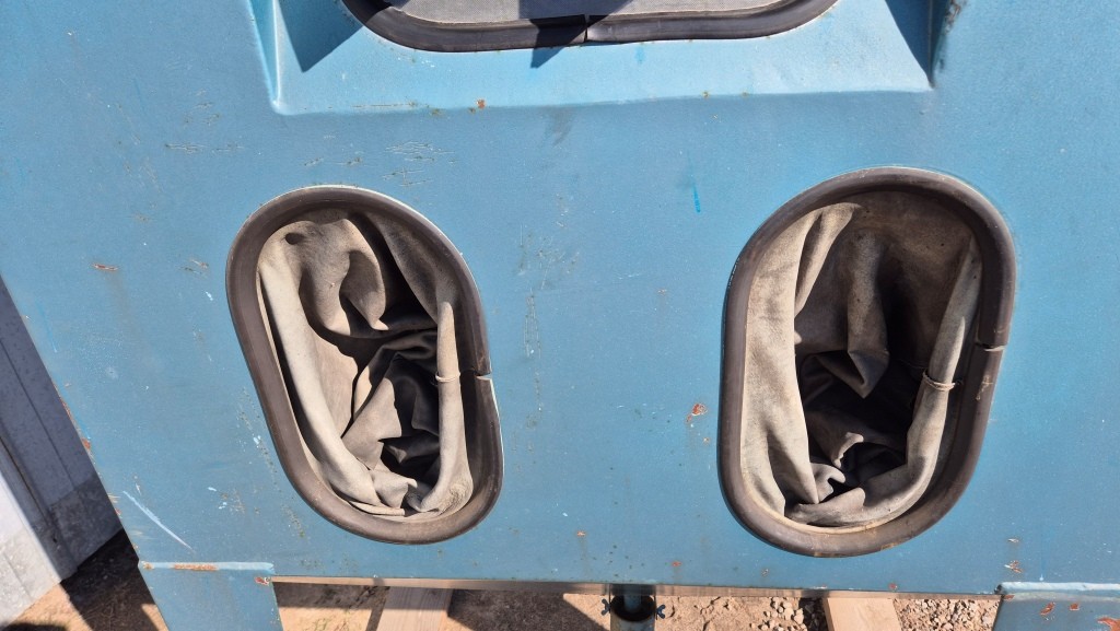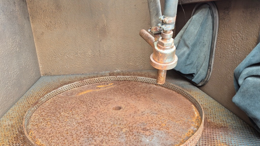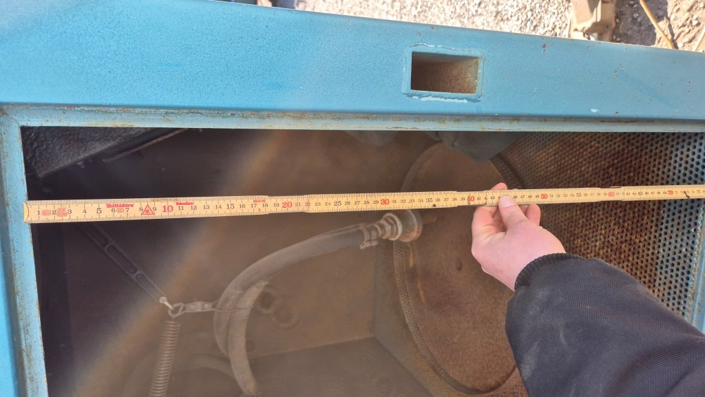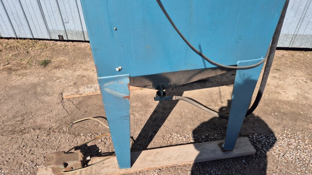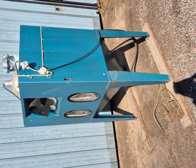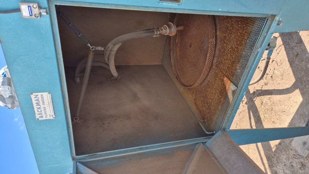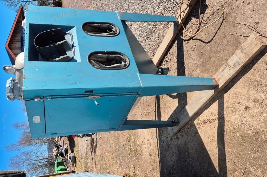 Blästerskåp av kraftig modell.Tillverkad av Bäckman,FilipstadMått: 111x90x215cmRoterbar tallrik i botten av blästerkammaren