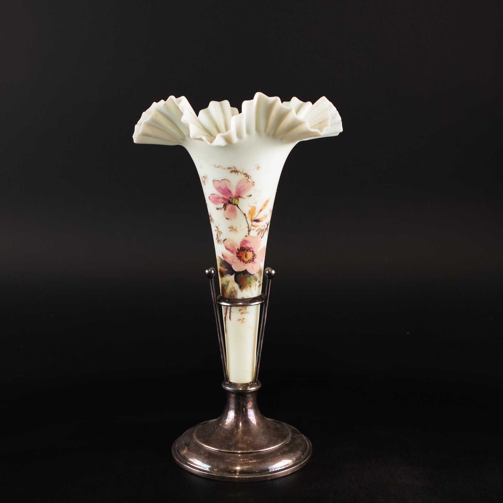 Bilder STRUTVAS 1900 talets första hälft, glas, vitmetall. H:29cm.