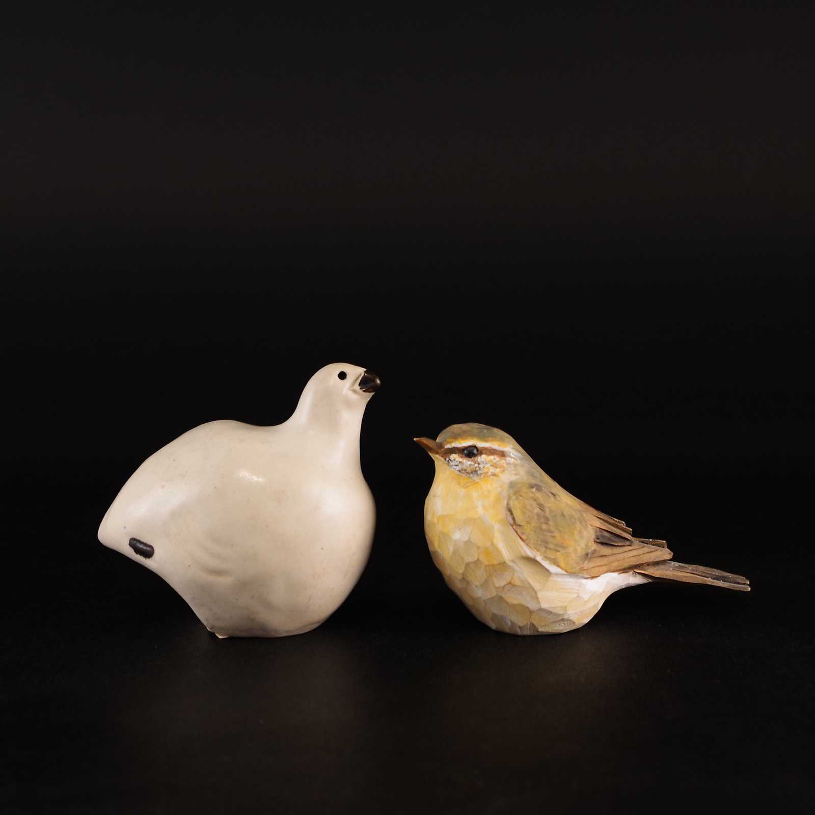 FÅGLAR 2st keramik/trä. H:7cm största. (liten defekt på träfågel)