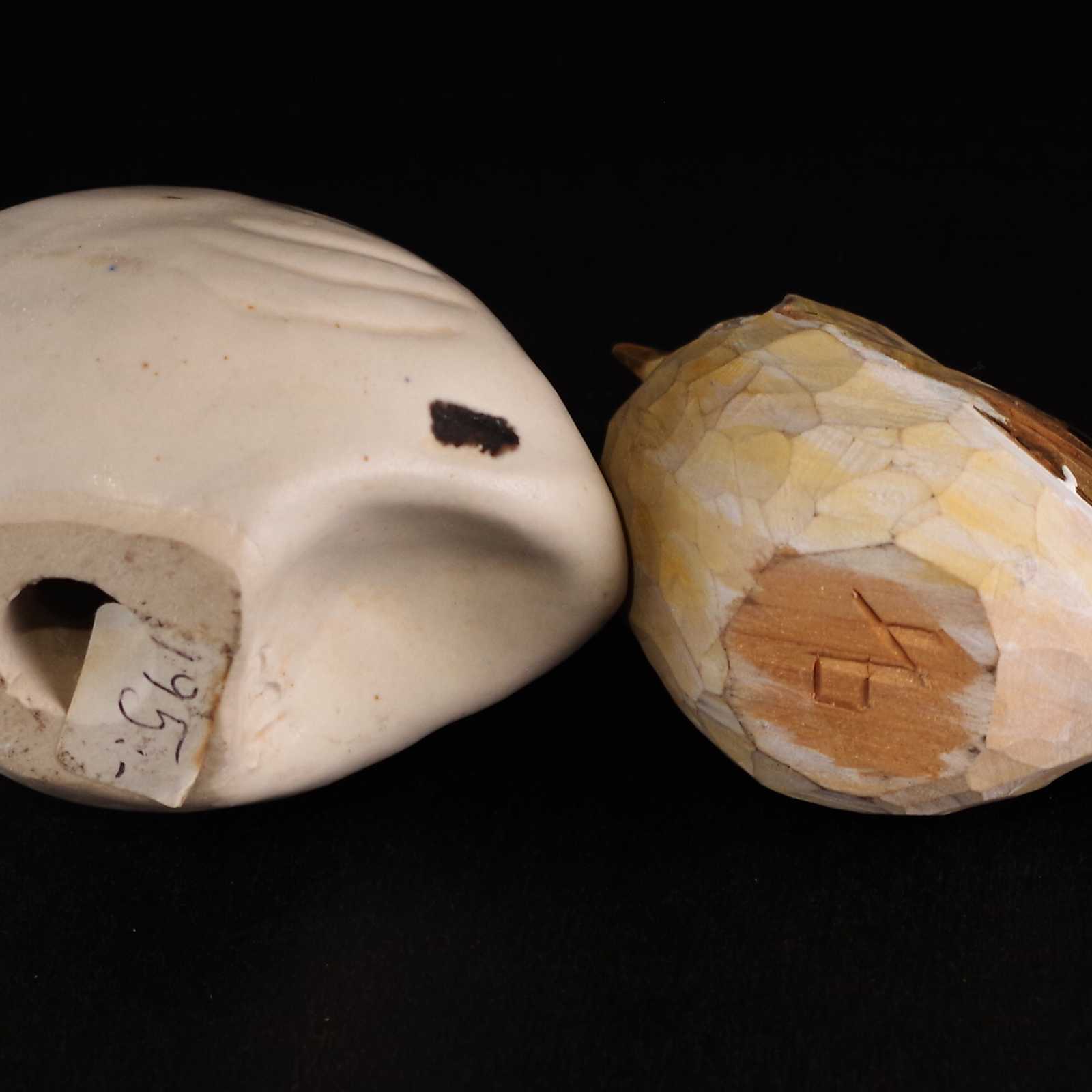 Bilder FÅGLAR 2st keramik/trä. H:7cm största. (liten defekt på träfågel)