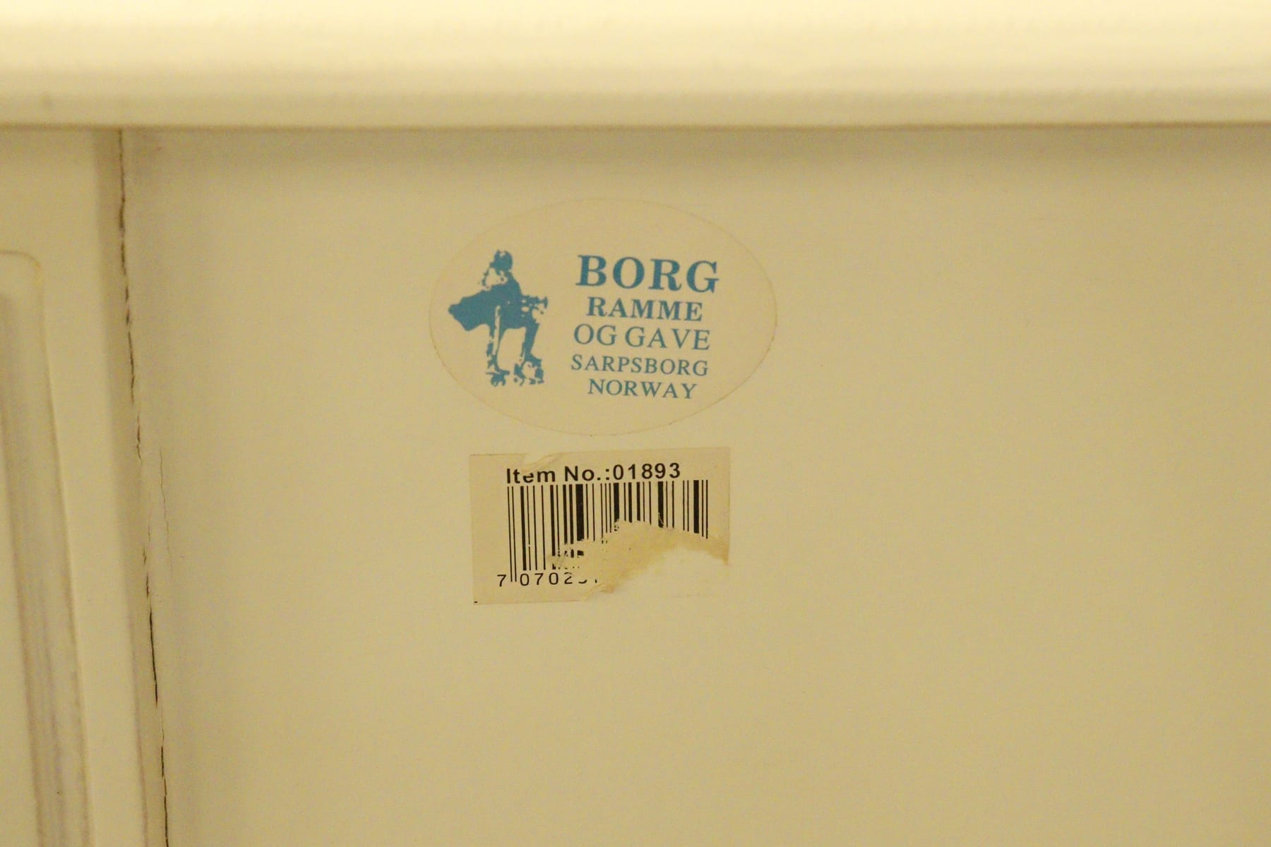 Bilder Väggbord med lådor och rottinghylla, vitmålat, Borg Ramme, Norge